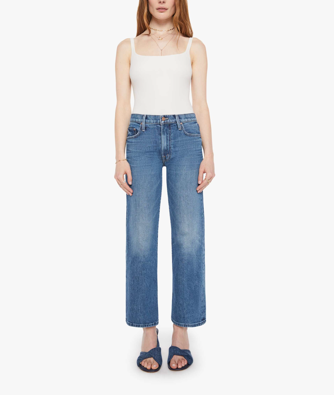 Shake it up. Mid-rise jeans with a wide straight leg, zip fly and clean ankle-length inseam. Made from semi-rigid denim, Tambourine Man is mid blue with subtle whiskering and fading at the knee.