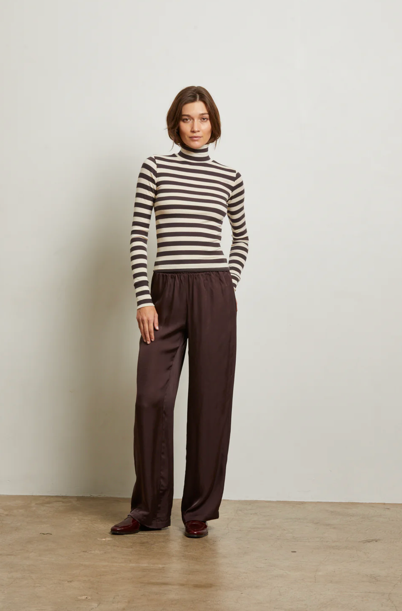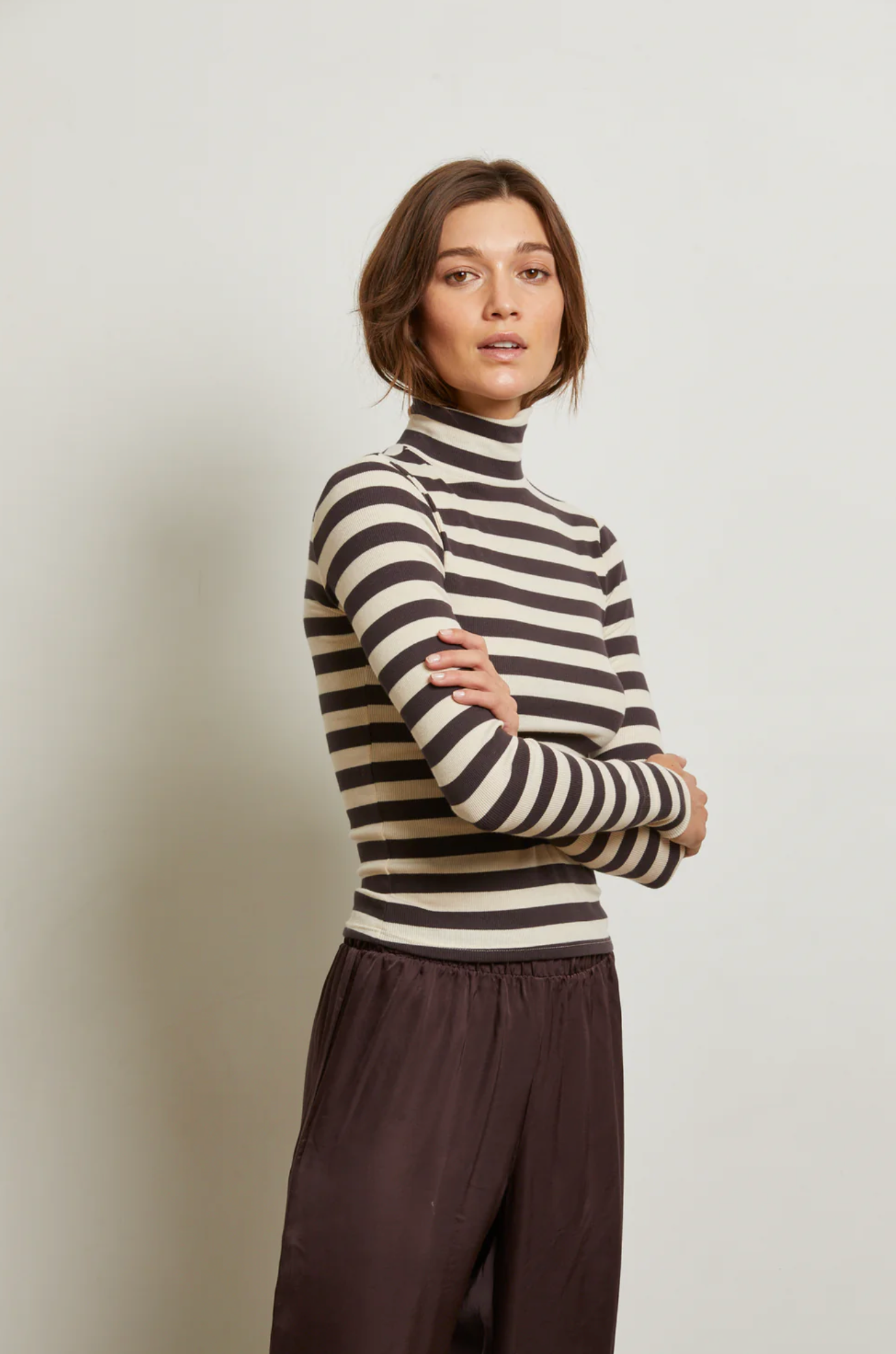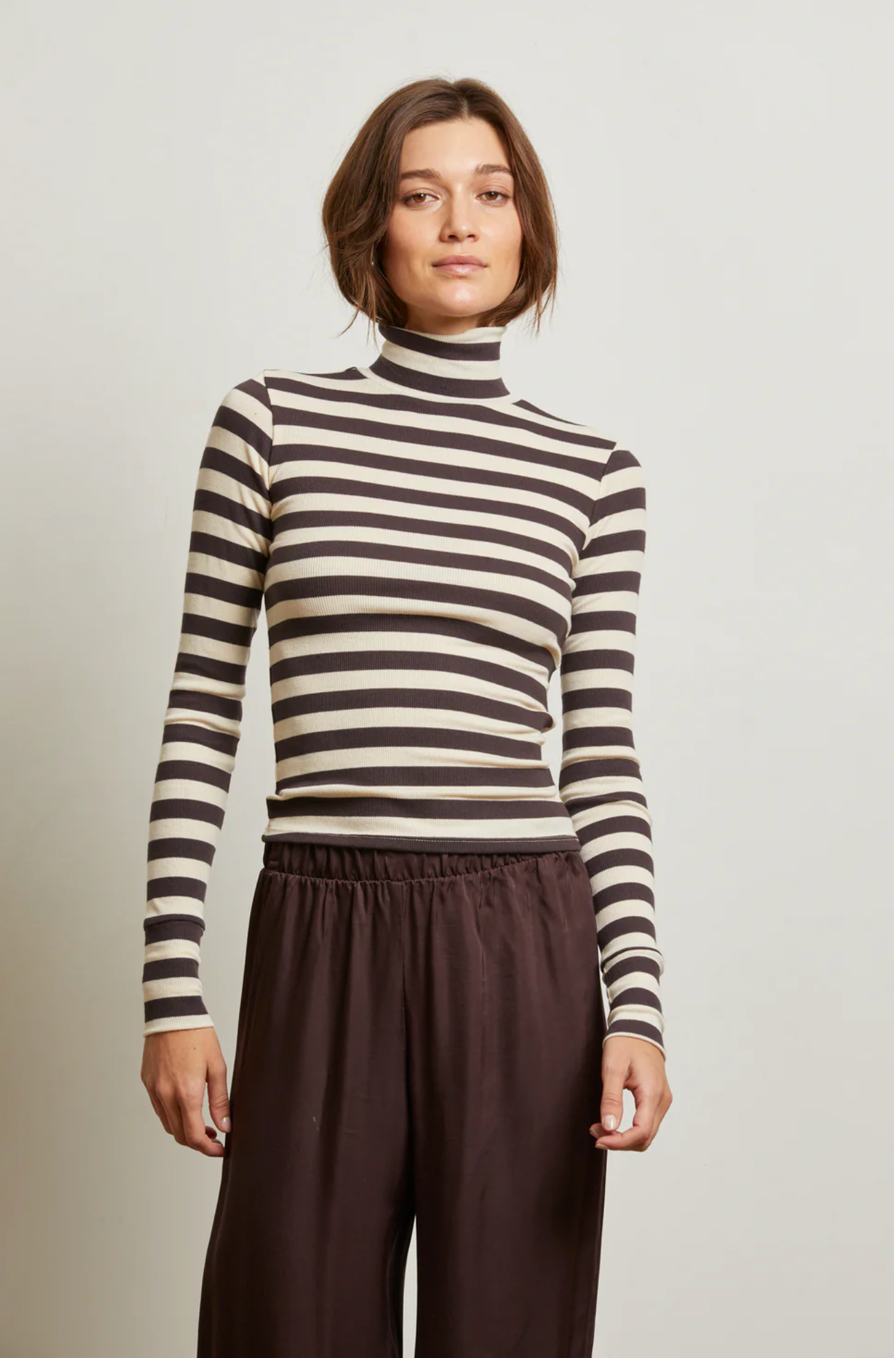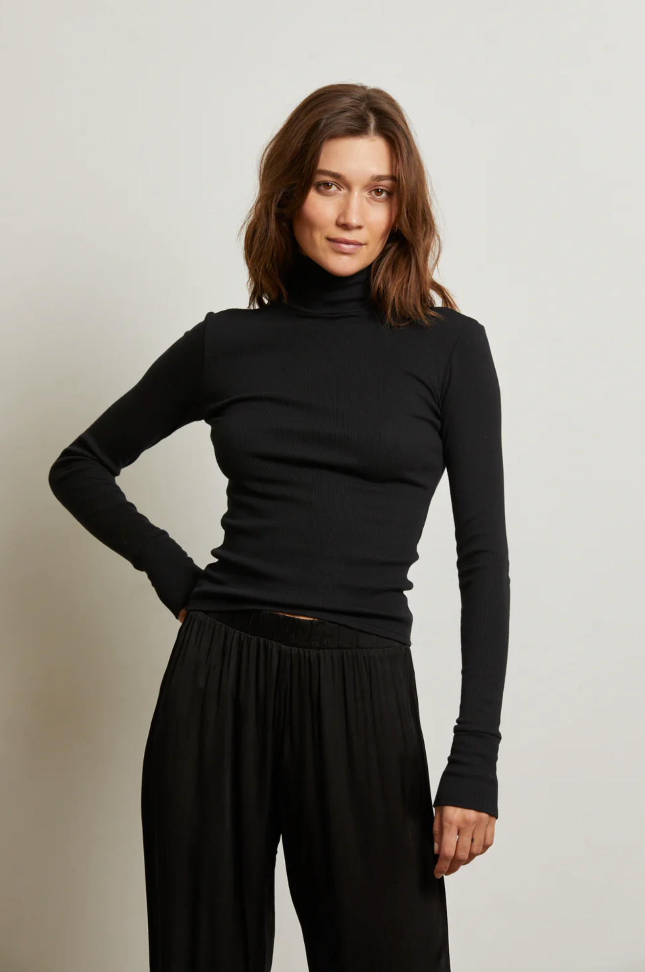 crafted from our signature cotton rib modal, the hayden top is your answer to elevated everyday dressing. this body-hugging style features a tall turtleneck for a refined, polished look that still feels easy. a sister to our lauryn mock neck, hayden brings a little more drama up top. wear it with your most relaxed denim for that just-right contrast.