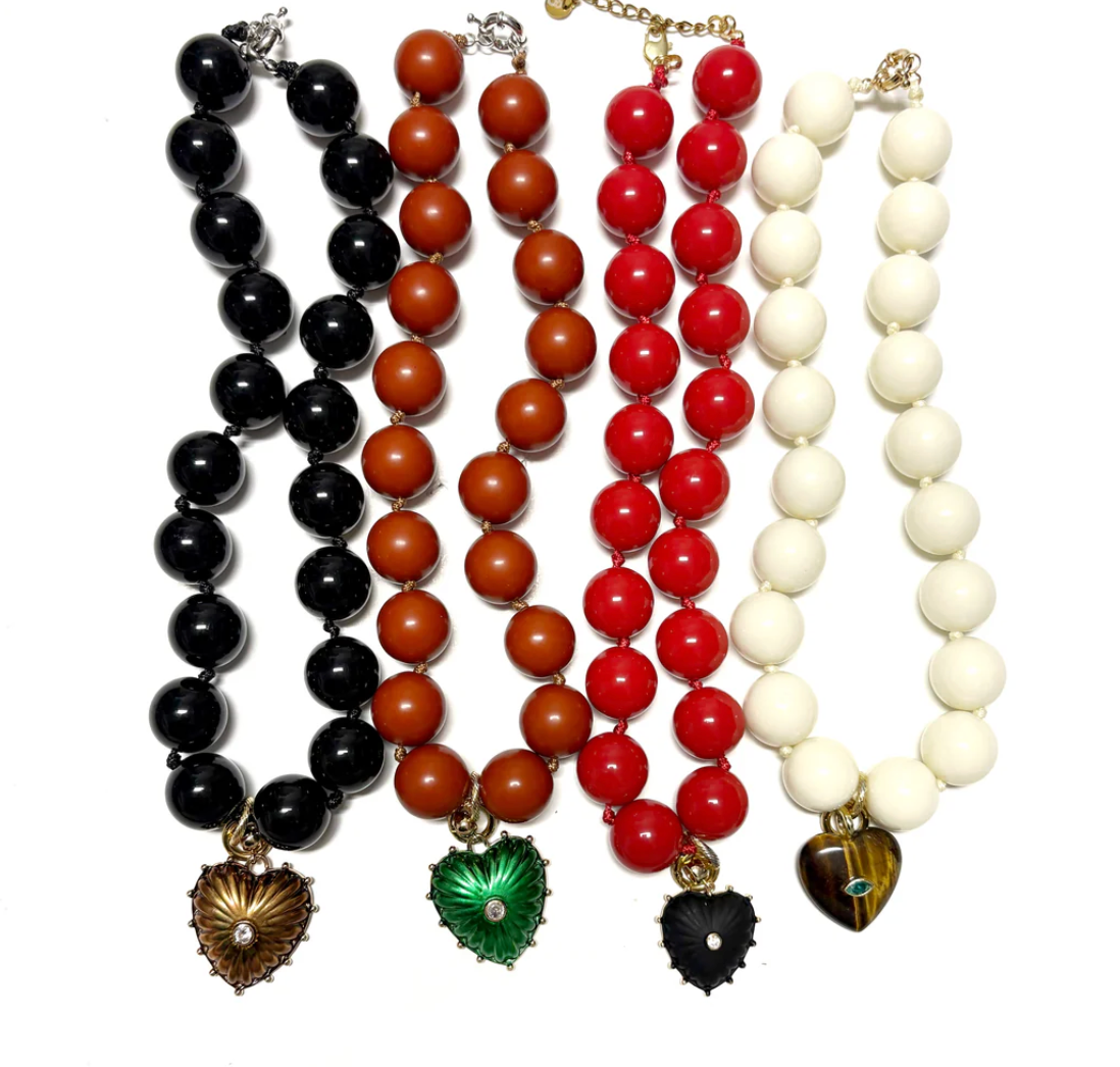 Betsy Pittard Lovita necklace 14" with claw clasp, beaded with heart