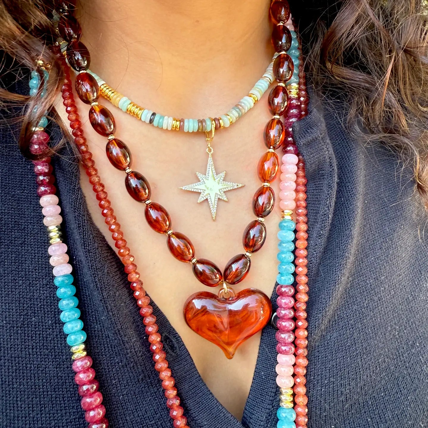 Roxie Tortoise Beaded Necklace with Heart Charm