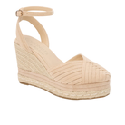 This espadrille wedge sandal blends elevated height with warm-weather styling. The vegan upper features a closed-toe design paired with an adjustable ankle strap for a secure fit. A wrapped espadrille platform adds texture while delivering a confident 4-inch lift. Designed to balance structure and seasonal style, this sandal transitions easily from casual outings to dressed-up moments.