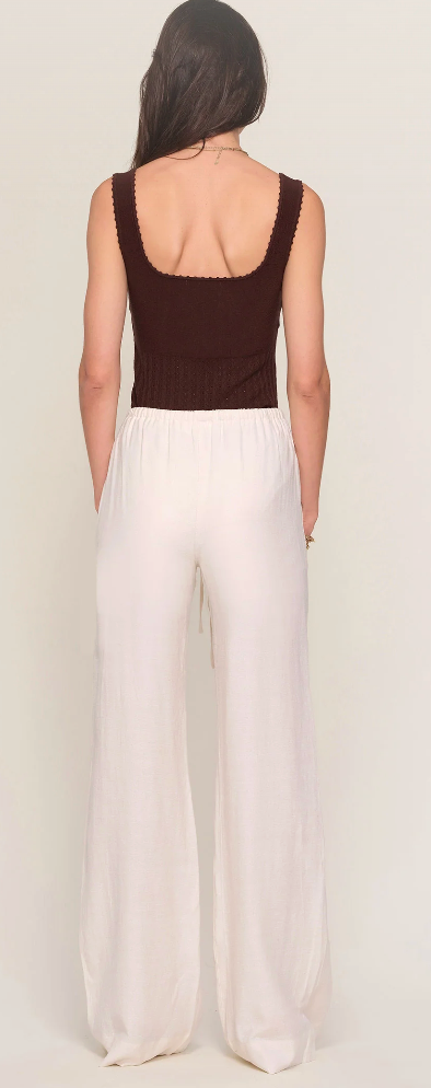 The Catalina Pant has drapey wide legs for next level comfort. With tie at waist, this pant is polished enough to wear to work but also have pajamas-level comfort. Pairs perfectly with the Anne Top.