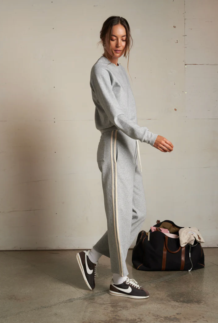 why we love it: the stripes make it feel vintage, but the fit feels modern. it packs small, wears big, and somehow works with everything. sneakers, slides, whatever’s by the door. the perfect pant for when comfort matters but style still counts.