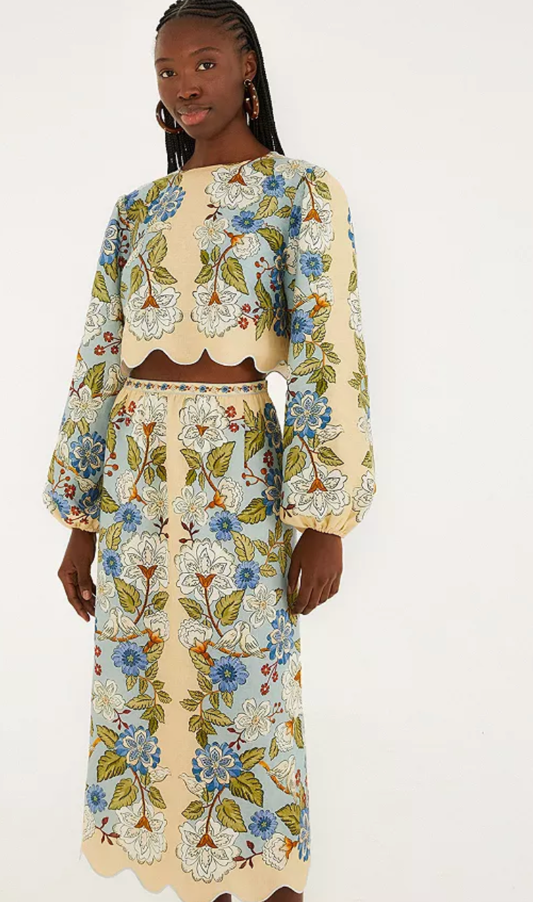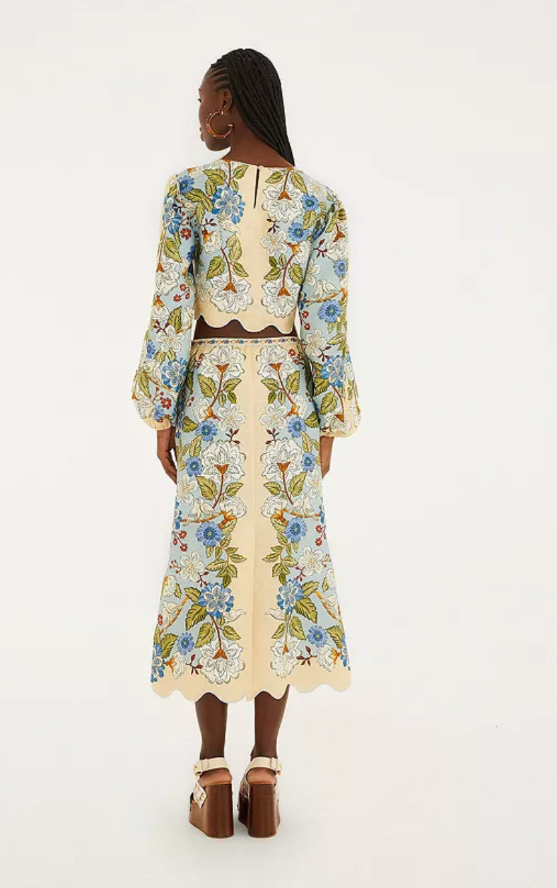 Garden Scarf Blue Midi Skirt