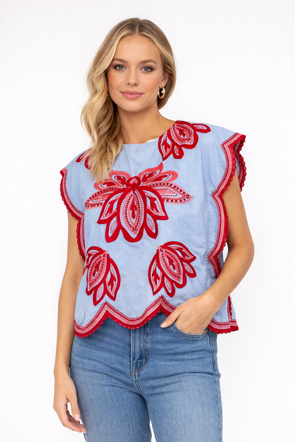 Featuring vibrant stitching and delicate detailing, this piece adds a playful yet elegant touch to any outfit. Crafted from comfortable fabric and perfect for dressing up or down, it’s a standout style you can pair with a cute pair of jeans!