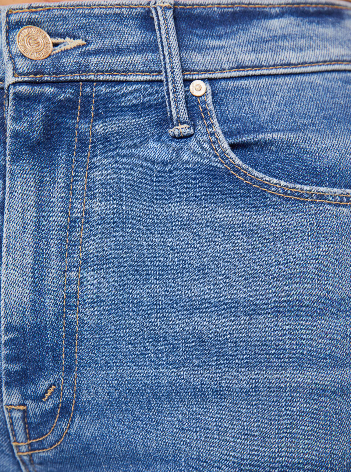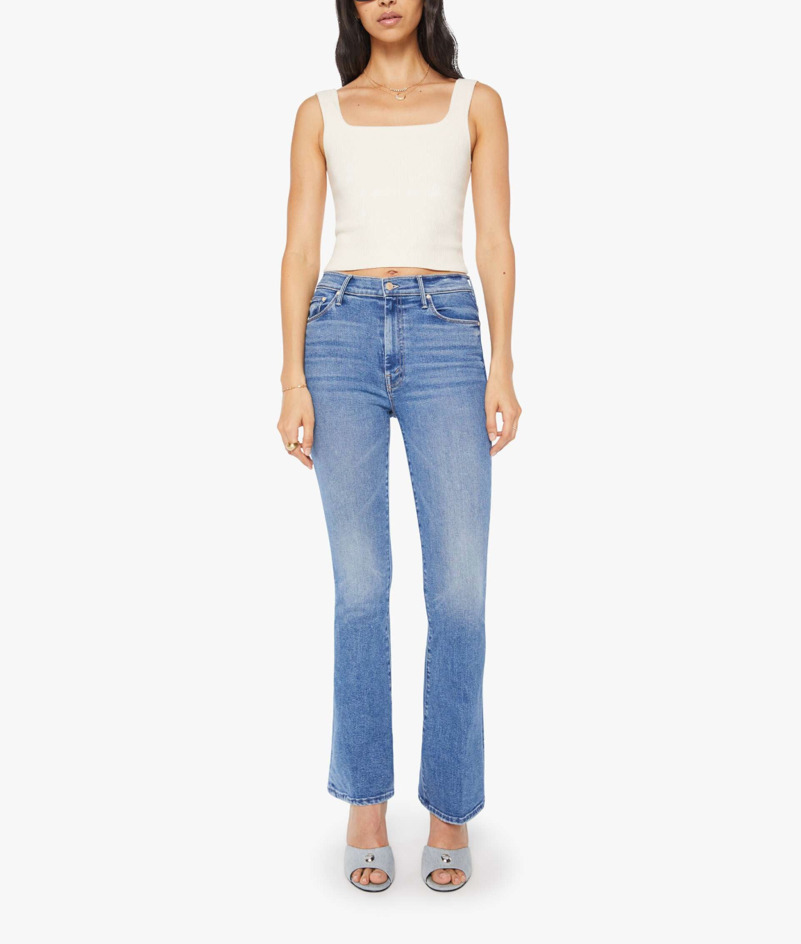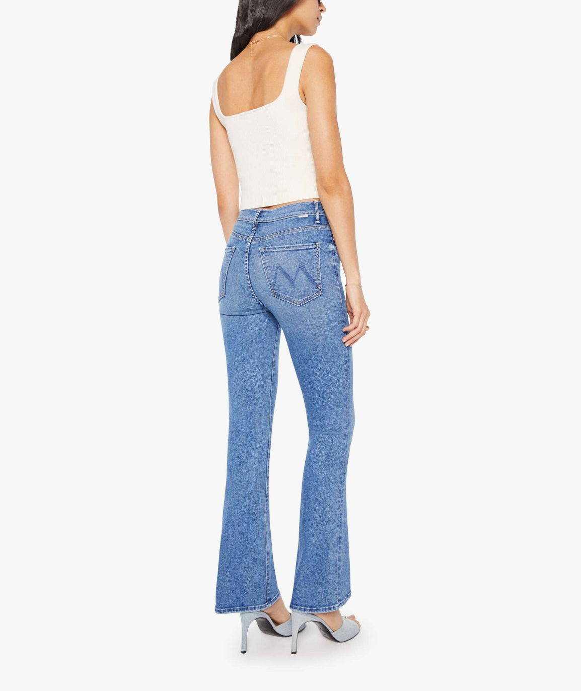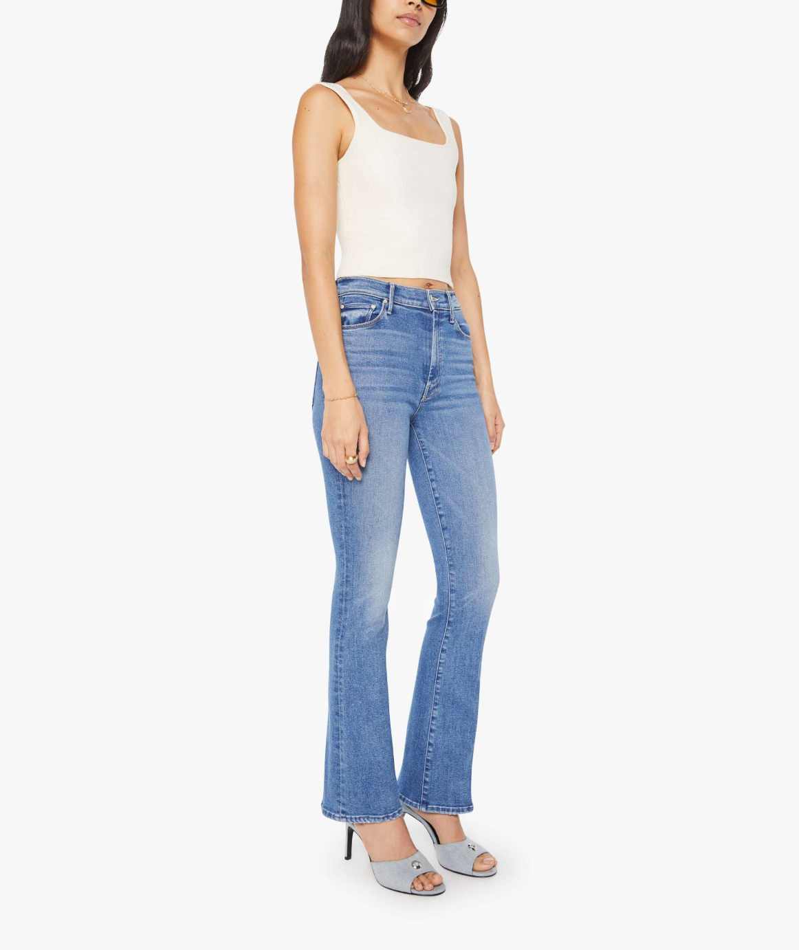 Strike three. This cult-favorite flare jean has a high rise with a 31-inch length inseam and a clean hem. Cut from super stretchy denim, Swing And A Miss is a mid-blue with whiskering and fading at the knee.