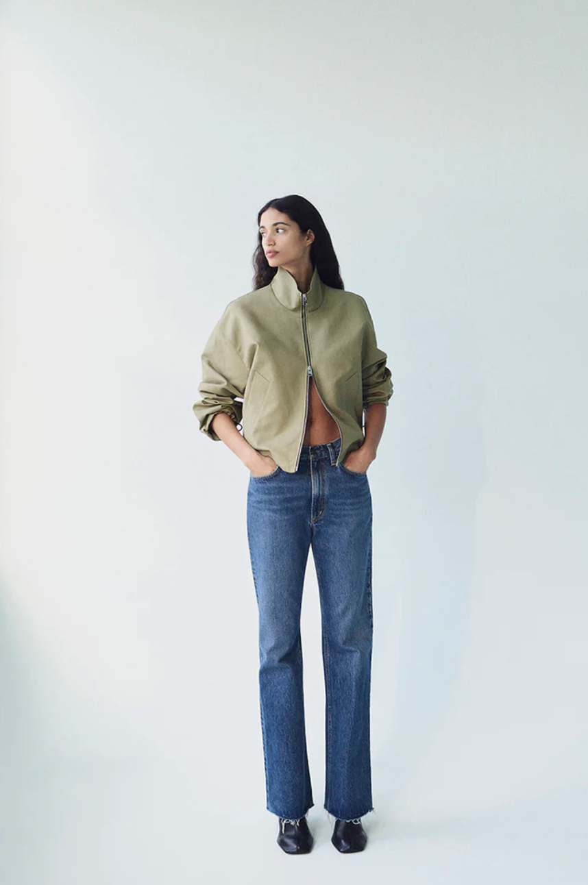 The Leena is a high-rise baby flare jean that blends a modern and vintage-inspired fit. Crafted from regenerative cotton, it features a flattering cut-off hem and traditional five-pocket detailing. Made in vintage medium to dark indigo denim, with fading, whiskering, and a raw cut hem, this jean has a beautifully draped fabric that adds effortless style to any look. Pair with a simple fitted top and sandals for an easy, casual day look or elevate with a tucked-in blouse and heeled boots for a more polished ensemble.