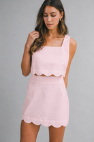 Sleeveless Scallop Hem Crop Top And Skirt Set