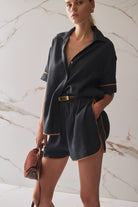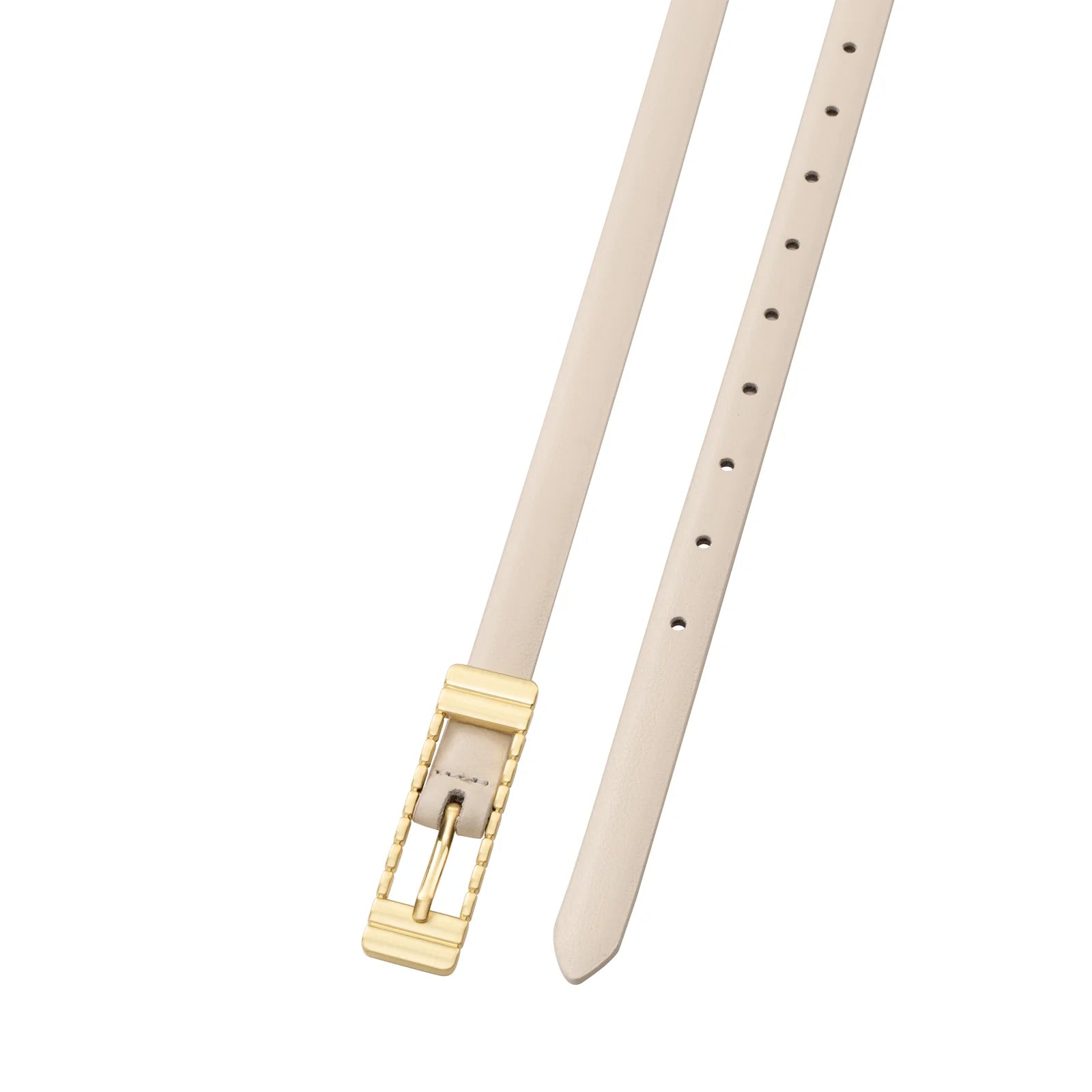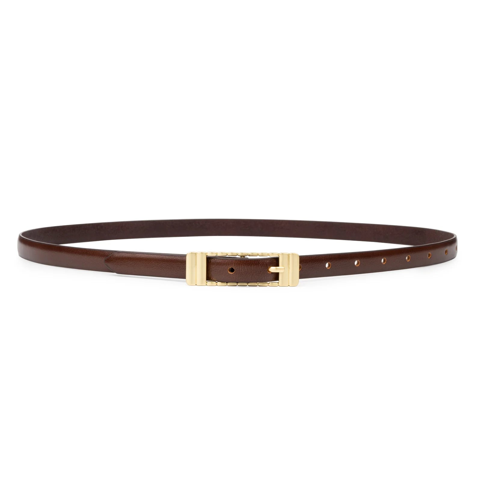The Marzi belt is a sophisticated update to SANCIA's classic vegetable tanned leather belts. Designed in a stunning brushed gold, the custom rectangular buckle features a statement ribbed effect. Style this belt with a simple jeans and tee outfit for an elevated touch.