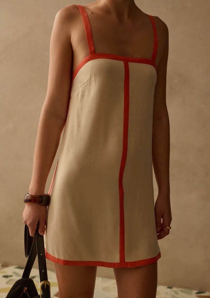 A laidback yet stylish piece, the Paige Dress combines delicate and minimal details. Featuring contrast binding that frames the silhouette of this dress and an elegant square neckline, this dress is both fun and flirty.