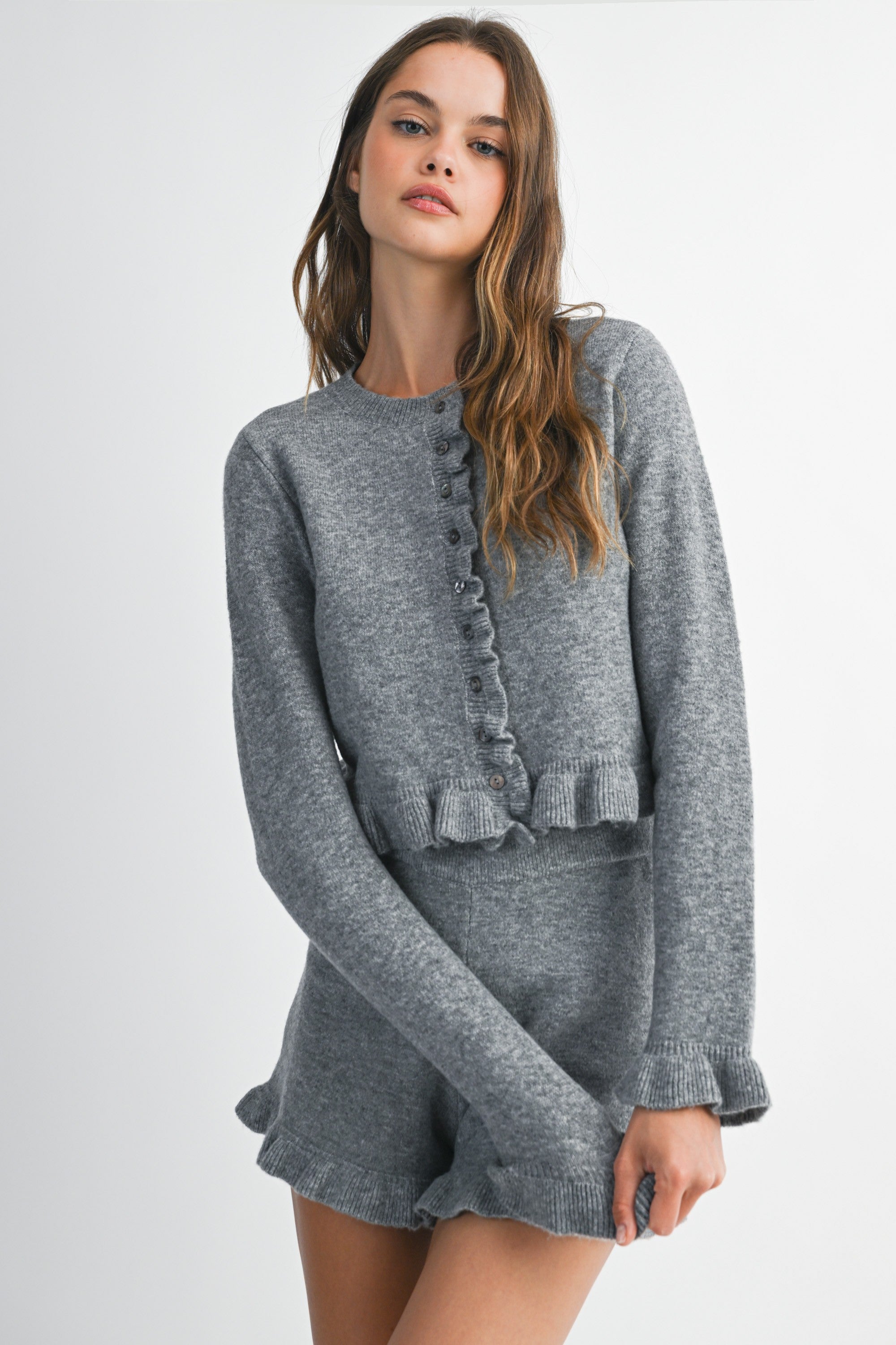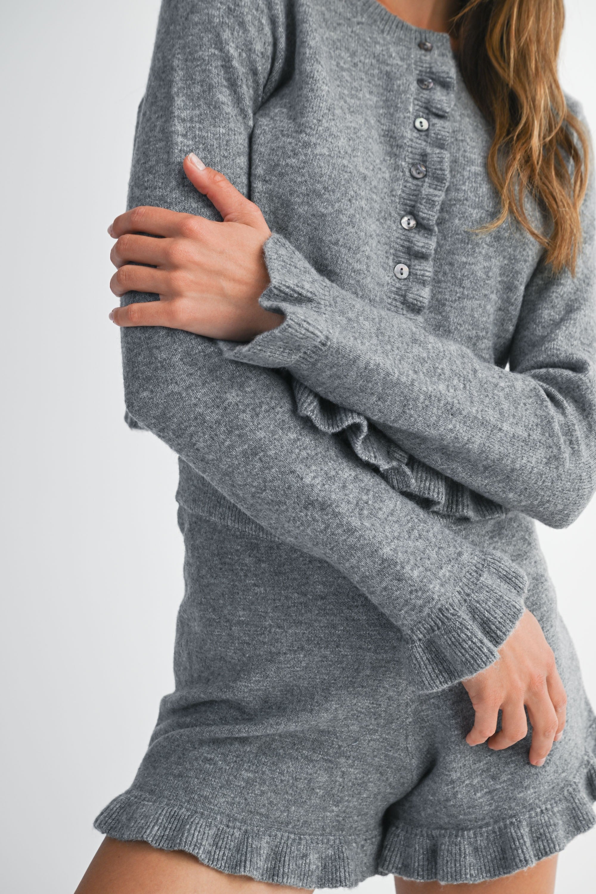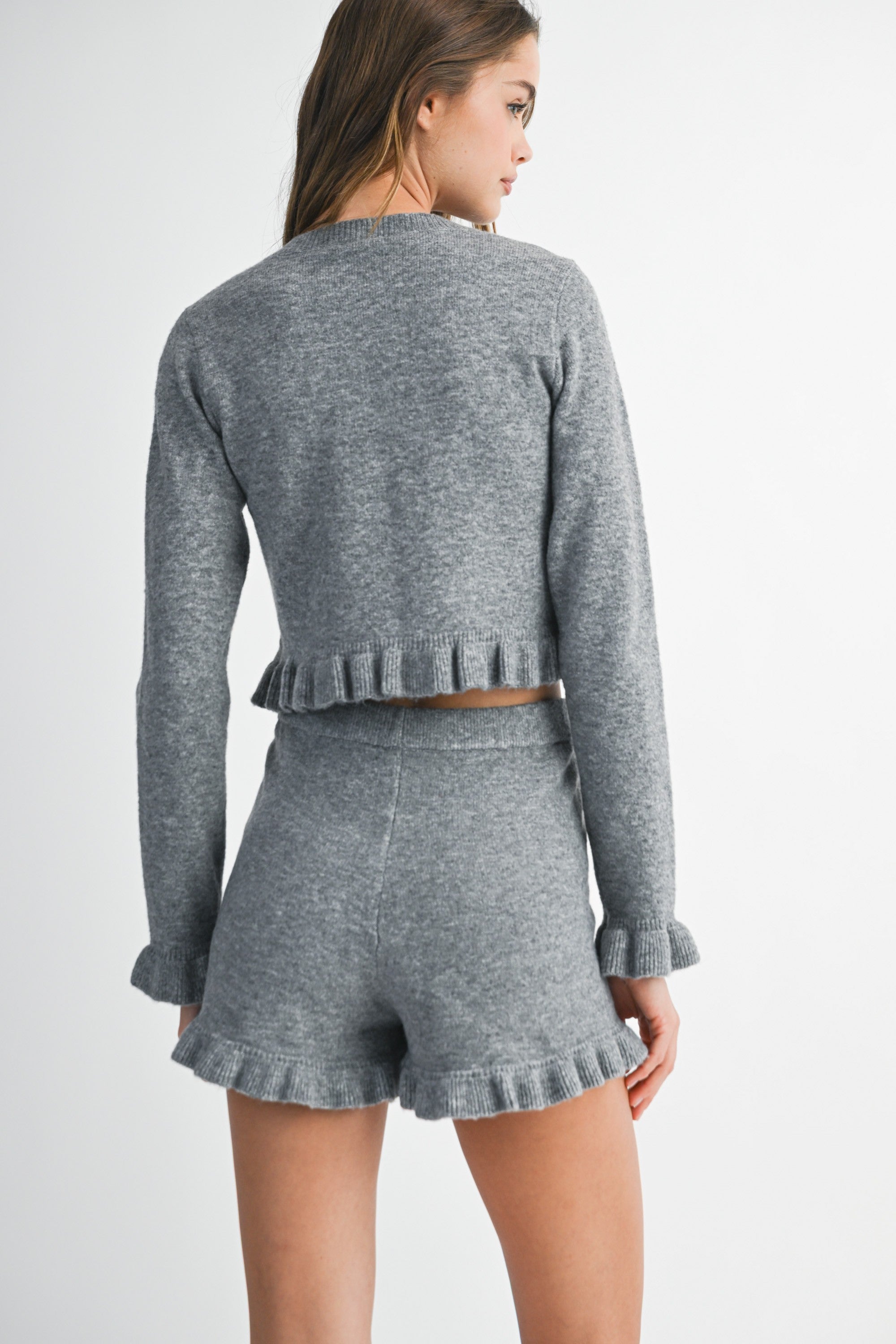 Ruffle Detail Knit Cardi Top and Shorts Set