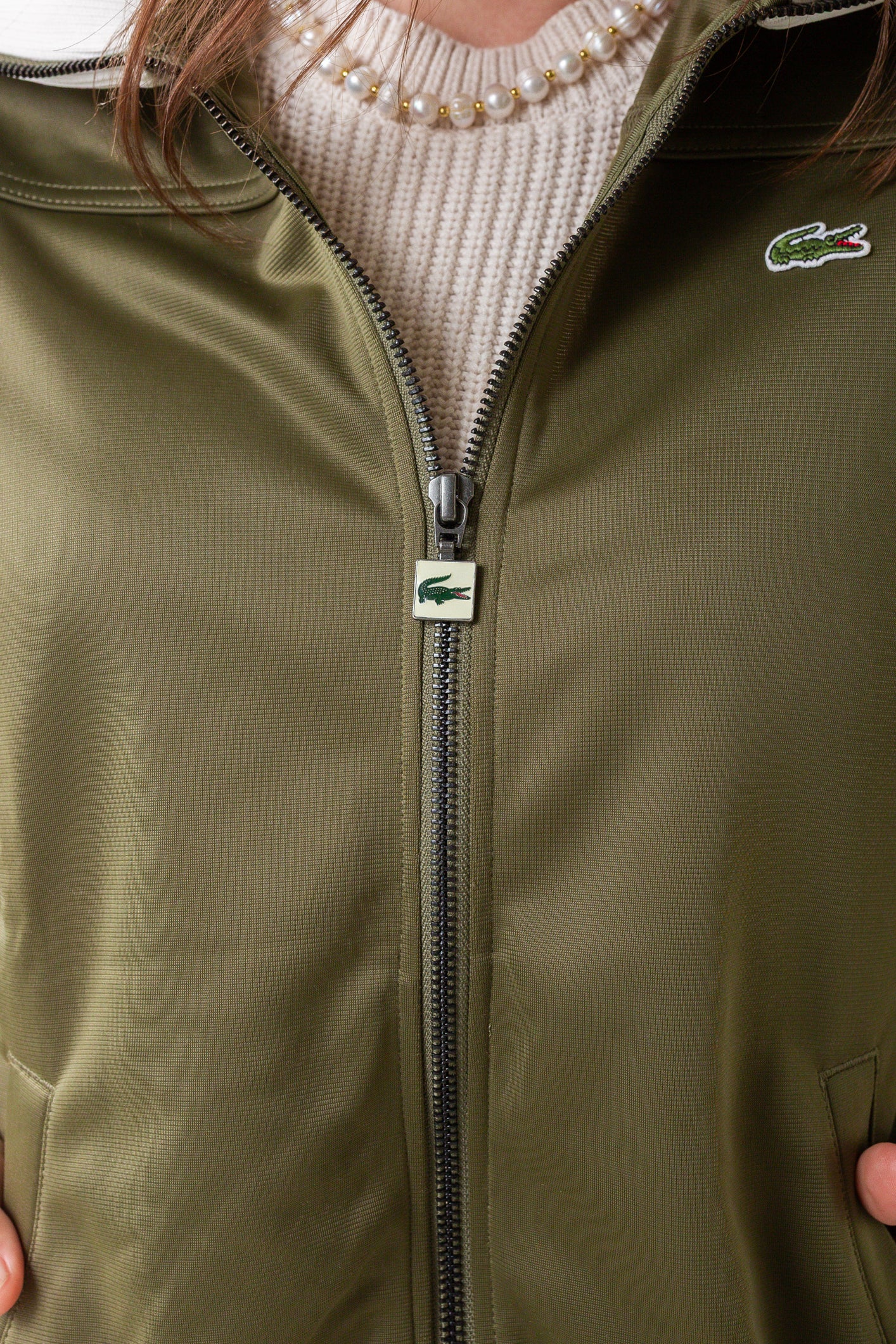 Pique Zip Up Sweatshirt with Pointelle