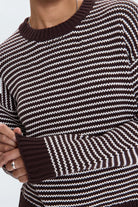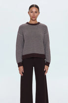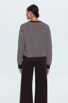 A timeless silhouette, Aura offers a classic crew neckline and an easy, relaxed fit that drapes effortlessly over denim, trousers, or skirts. Knit from 100% cotton, it’s soft yet structured—ideal for layering or wearing on its own. Mocha, a rich brown stripe mix, adds warmth and versatile polish to any look.