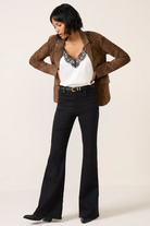 A full-length bootcut leg defines the Kinsley jean by Pistola, crafted in stretch cotton-blend denim with a mid-rise waist and 5-pocket styling.