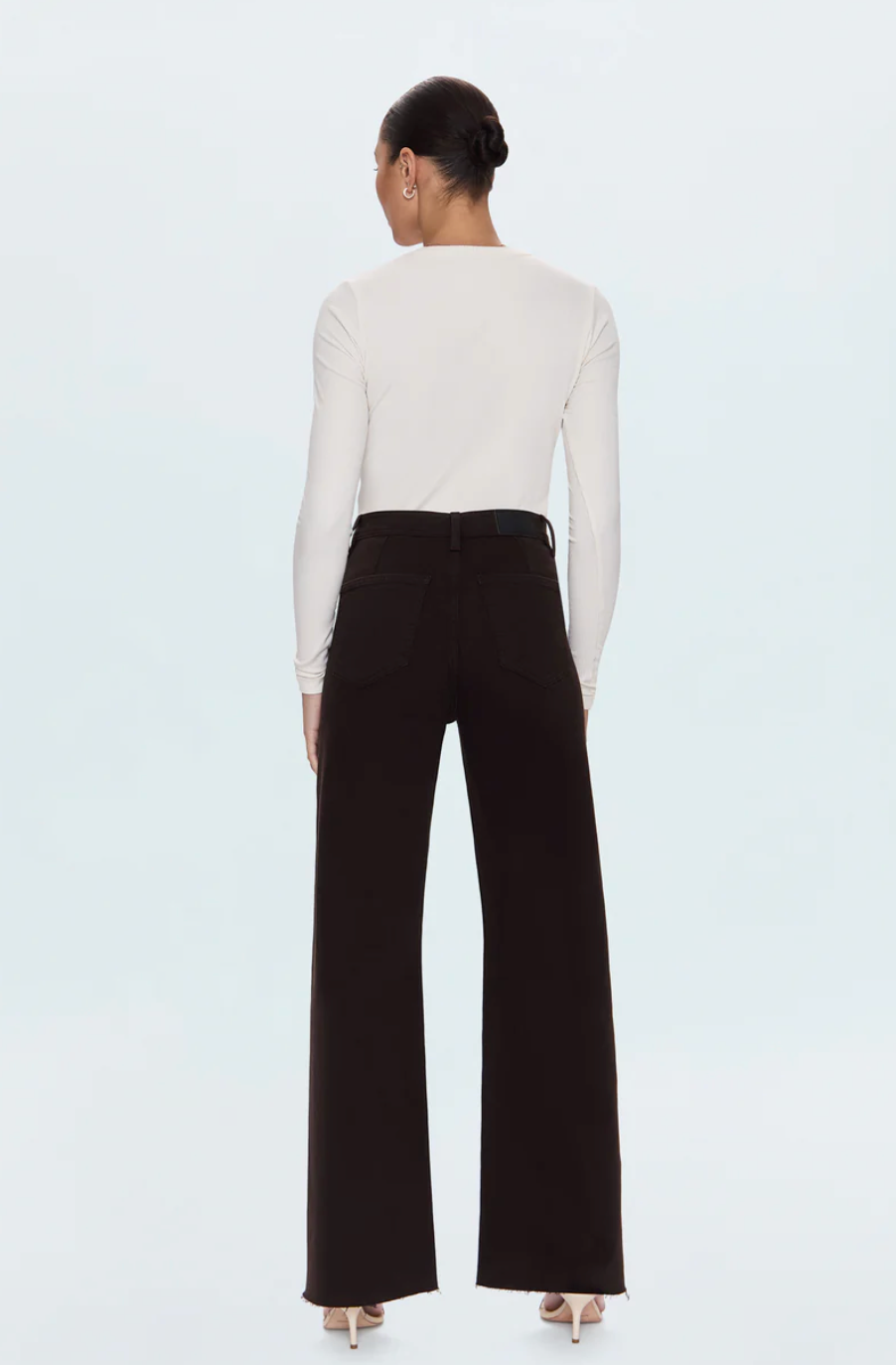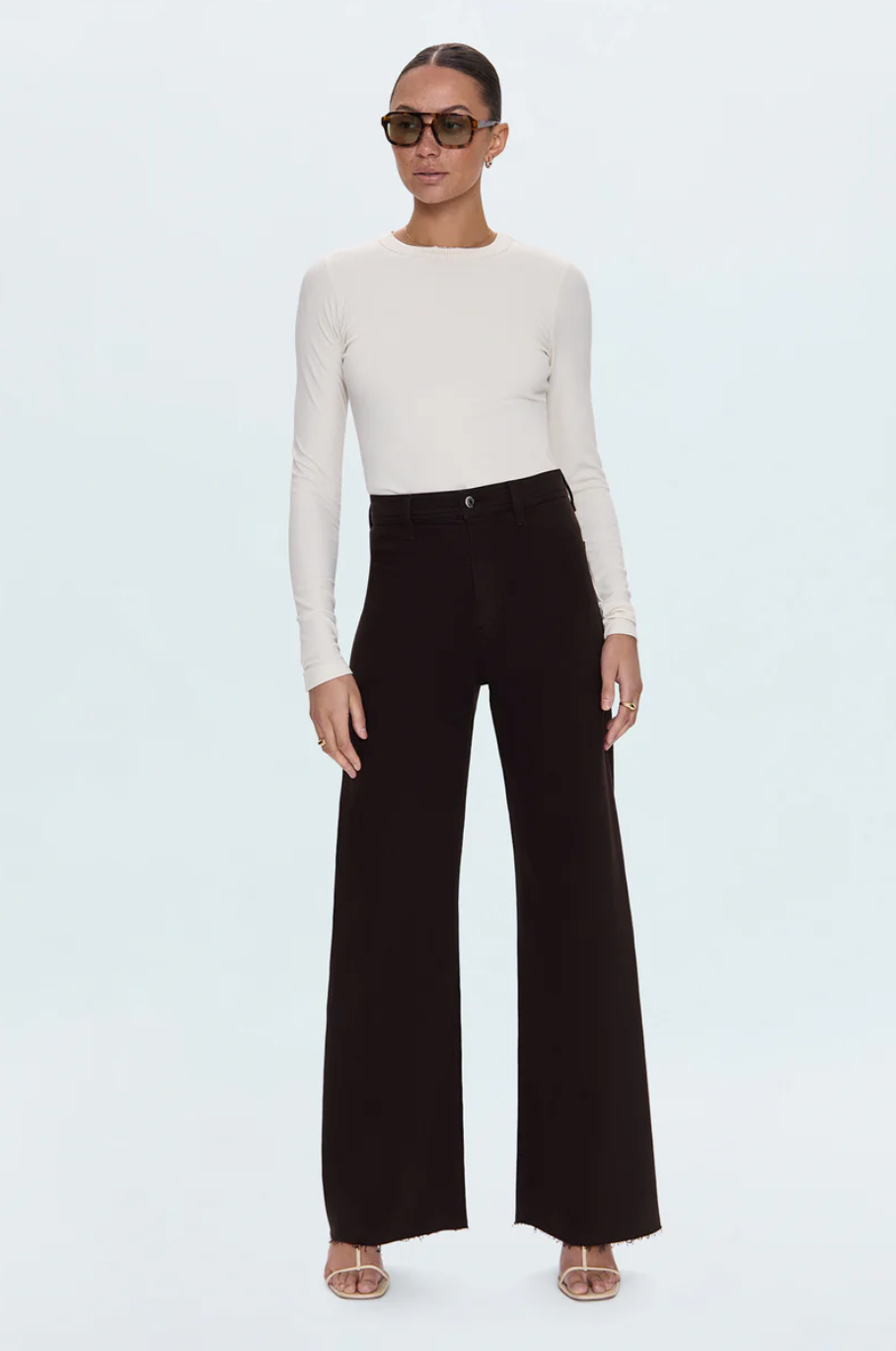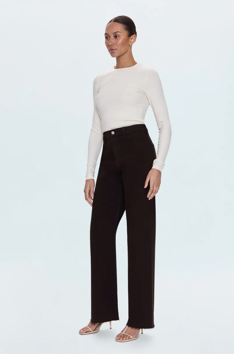 The wide leg that changes everything. Penny sits at a high rise with an ultra wide leg silhouette and full-length 28" inseam that creates effortless drama. The relaxed wide leg flows beautifully while the high rise anchors the proportions perfectly. Crafted from our comfort stretch fabrication that provides structured shape with movement. Mocha brings rich, earthy sophistication with its warm brown tone.