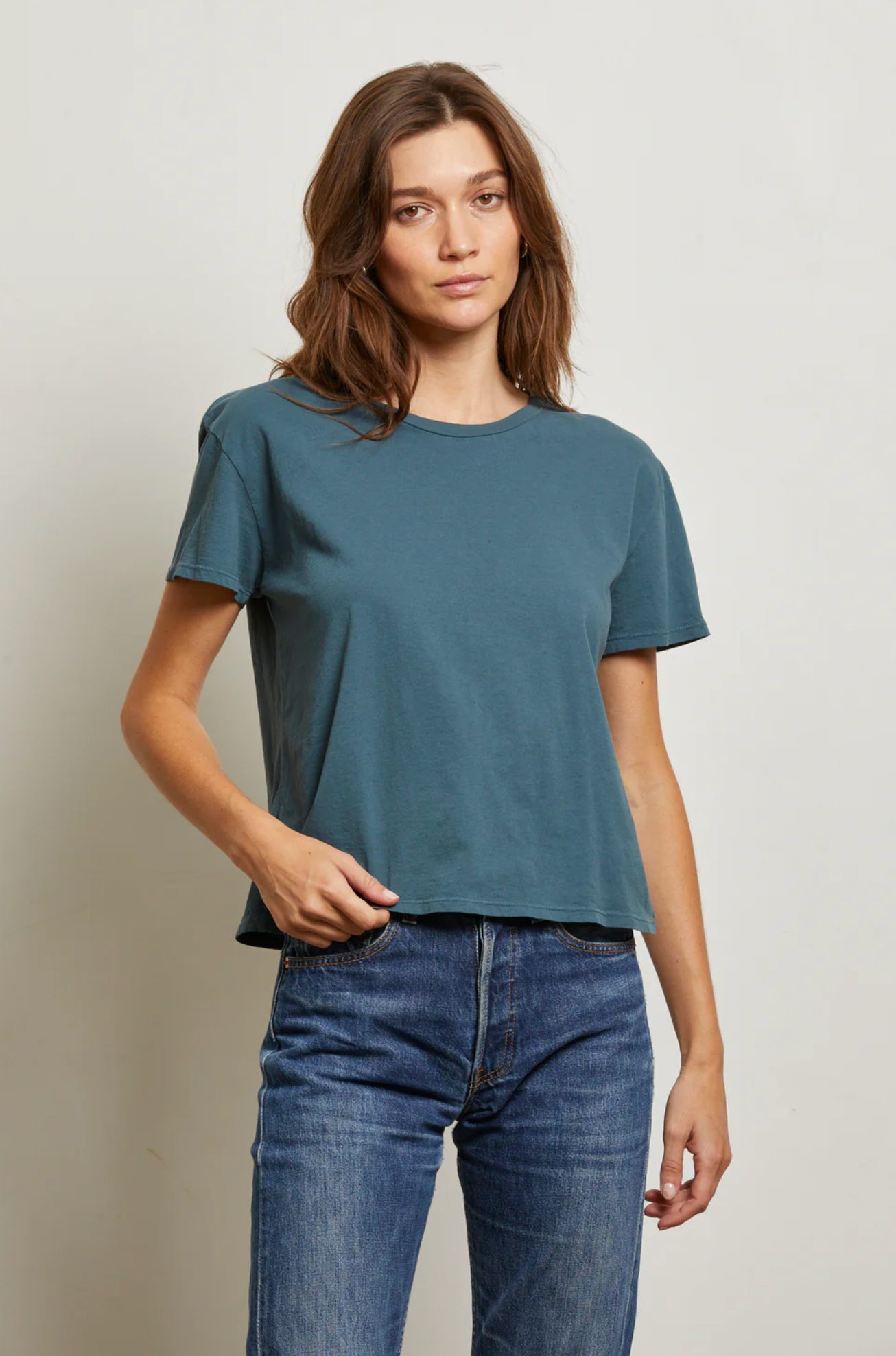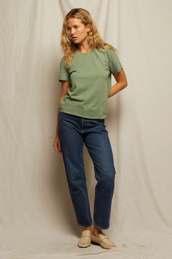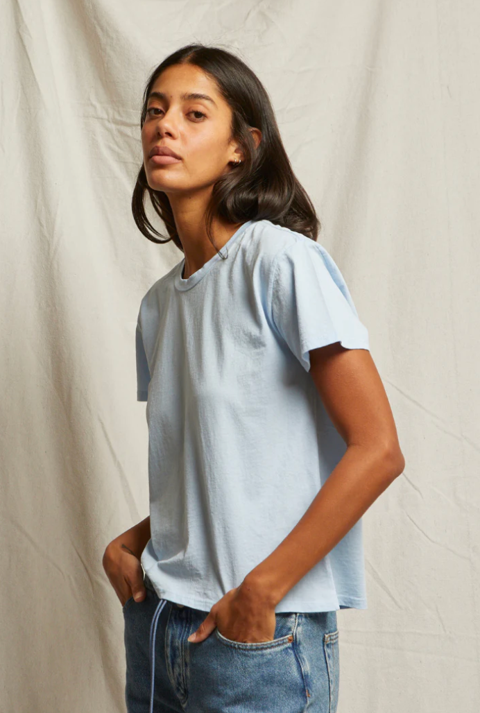soft. season-less. classic.the perfect, slightly-oversized crew neck tee. it’s sexy, but not too sexy. the essential staple piece you will want to live in. hits just below mid-rise denim. we curated the perfect hues for any wardrobe. get a few, they will be forever your favorite.