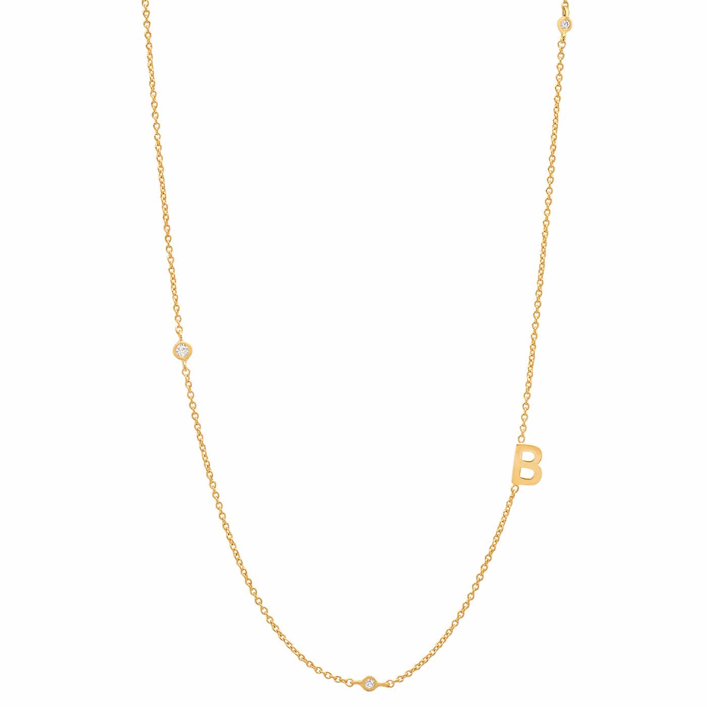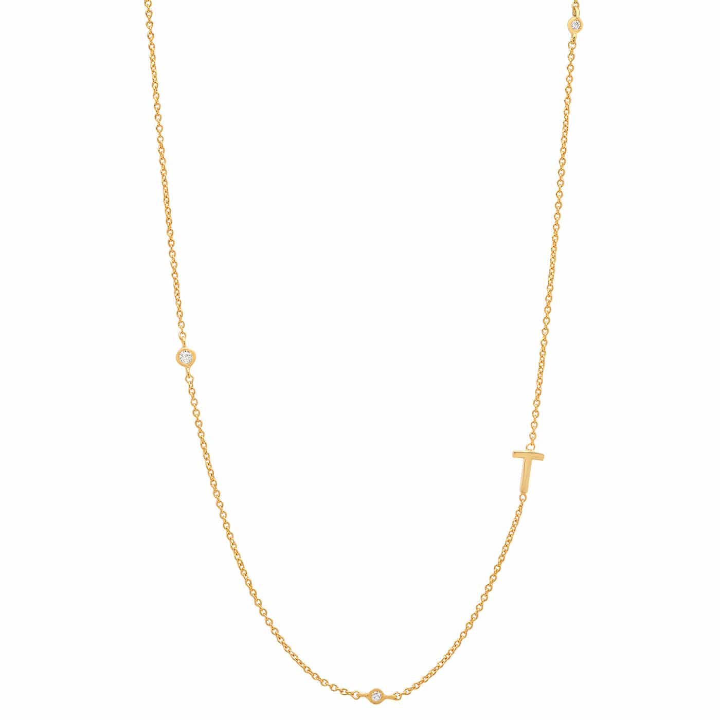 This 18K gold-plated Sideways Initial Necklace with CZ accents is the perfect addition to any wardrobe. Making a statement with its subtle sparkle, this dainty necklace can be personalized with an initial of your choice.