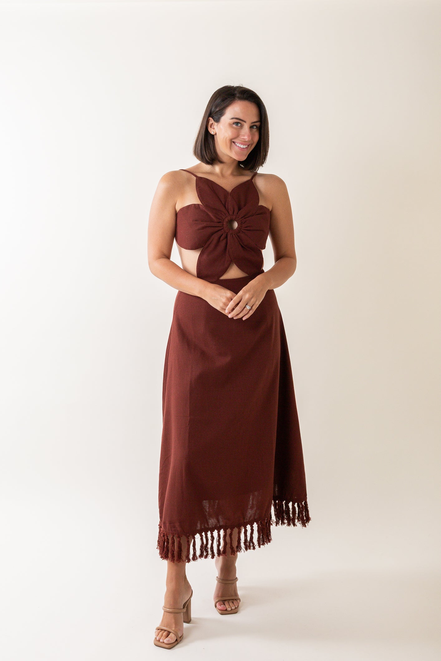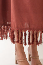 Floral Cutout Fringed Midi Dress