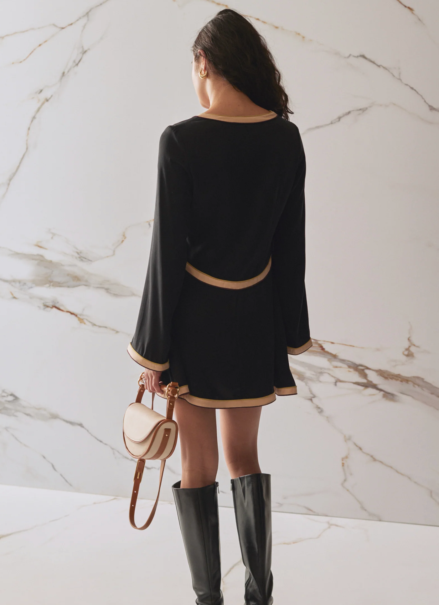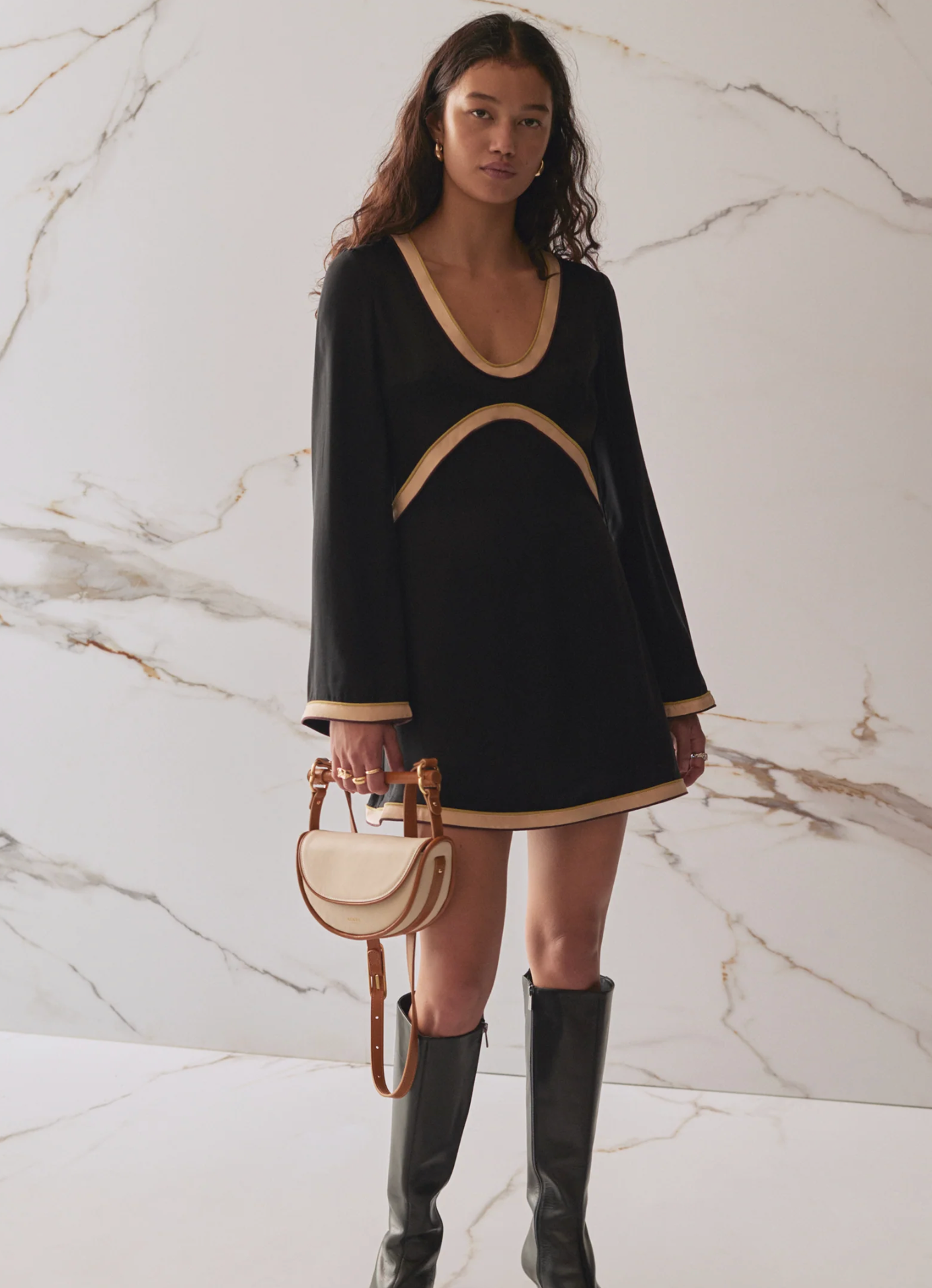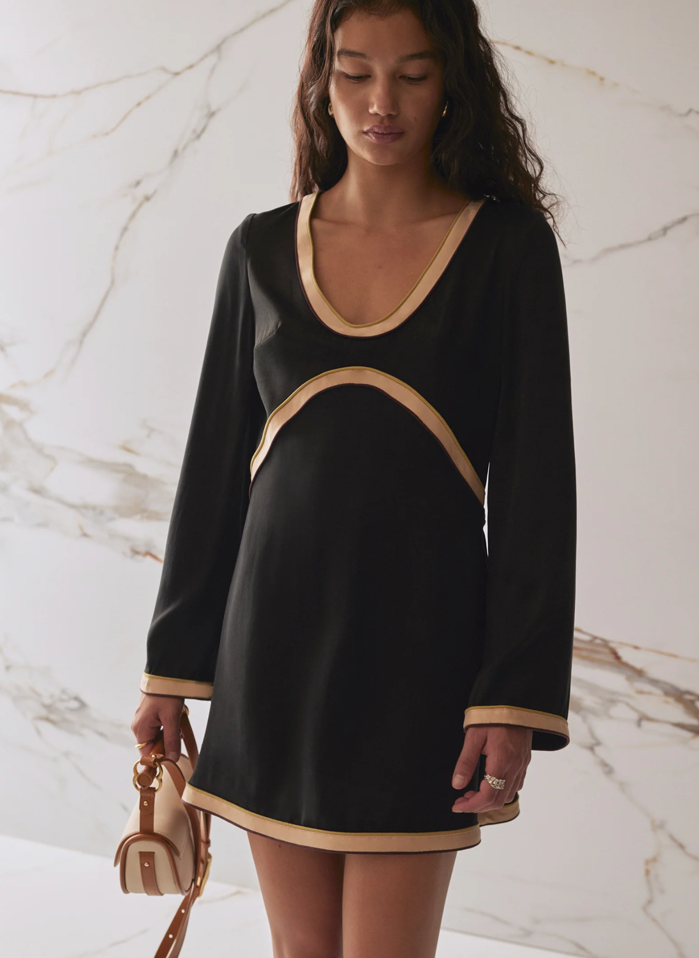 Our Luella Dress is a flattering mini like no other. Designed to contour the body with its curved binding lines, this dress gorgeously drapes into an a-line silhouette.