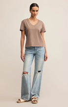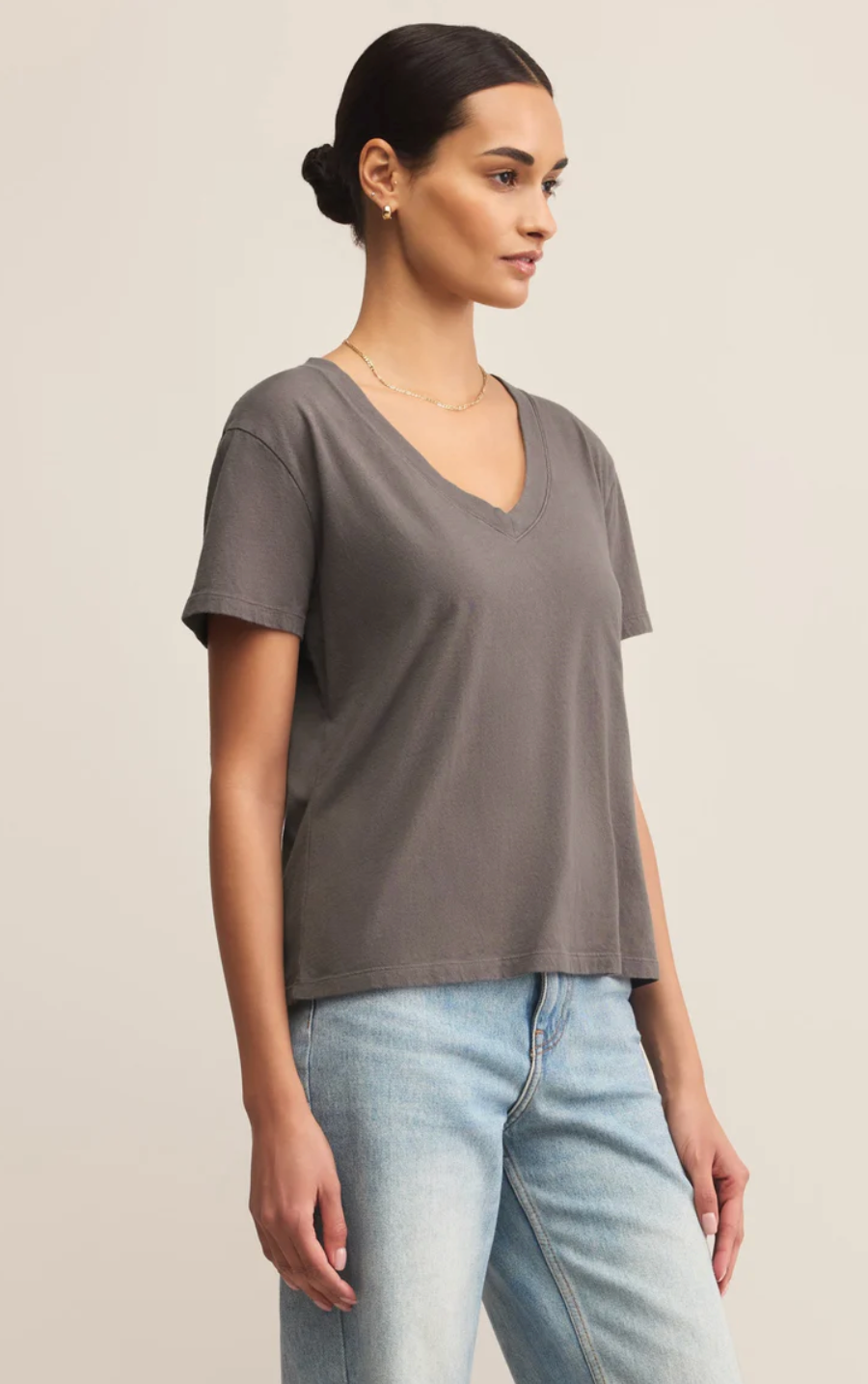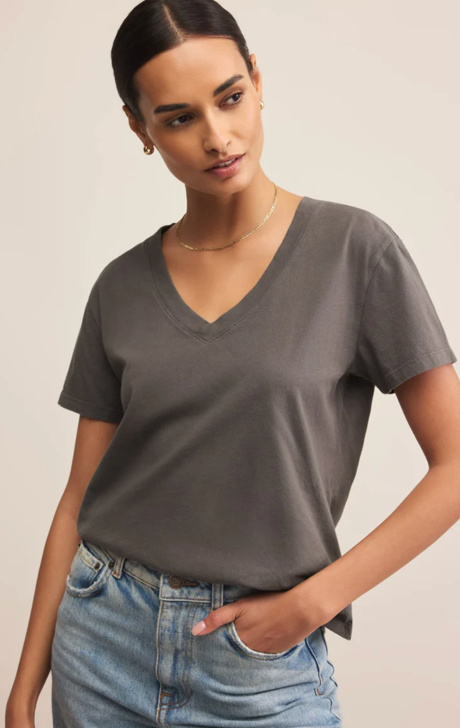 Made from a relaxed, loose-knit cotton jersey, this short sleeve v-neck is your anytime, anywhere tee. The soft texture and easy fit make it a go-to for everything from morning coffee to weekend errands.