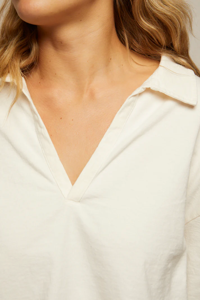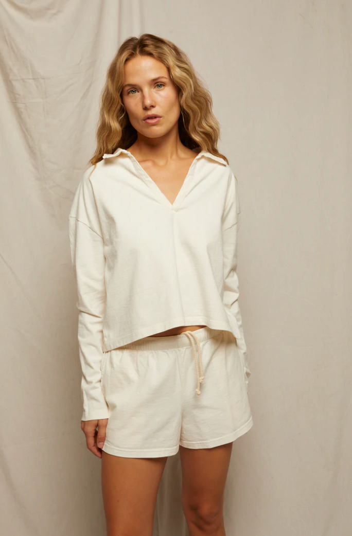 Elevated and cool with a lightweight feel. made from our signature Tennessee jersey fabric. Pair this collared top with our new Liz short for the perfect set.