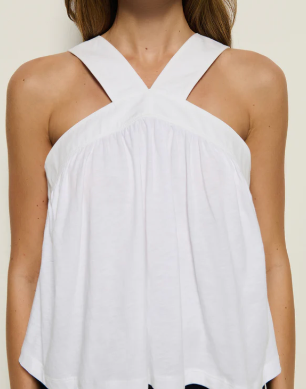 Flirty yet refined, the Bibi Halter Tank is your latest going-out staple. Featured in eco-friendly Pima Cotton, this top includes a poplin banded halter v-neckline and flowing knit body with a breezy, slightly cropped, a-line silhouette.