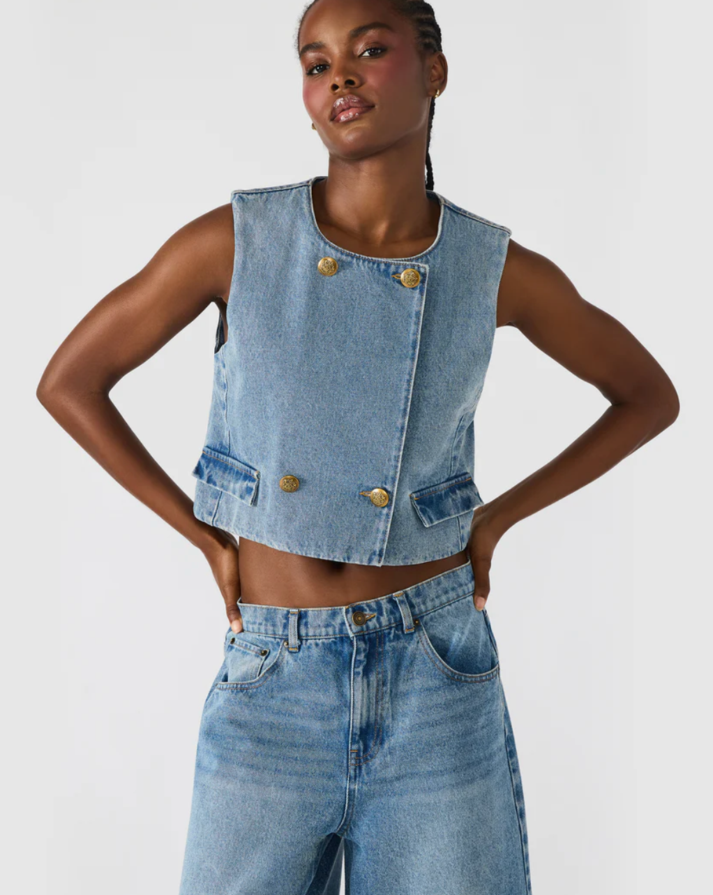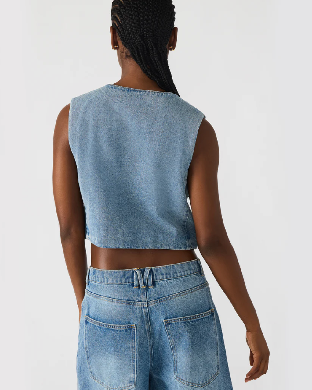 This BREA vest top is crafted from premium denim, featuring precise button details and a secure button closure for a polished finish. Designed as part of a matching set, this vest top offers versatile layering options, combining classic style with modern edge for a refined, expert look.