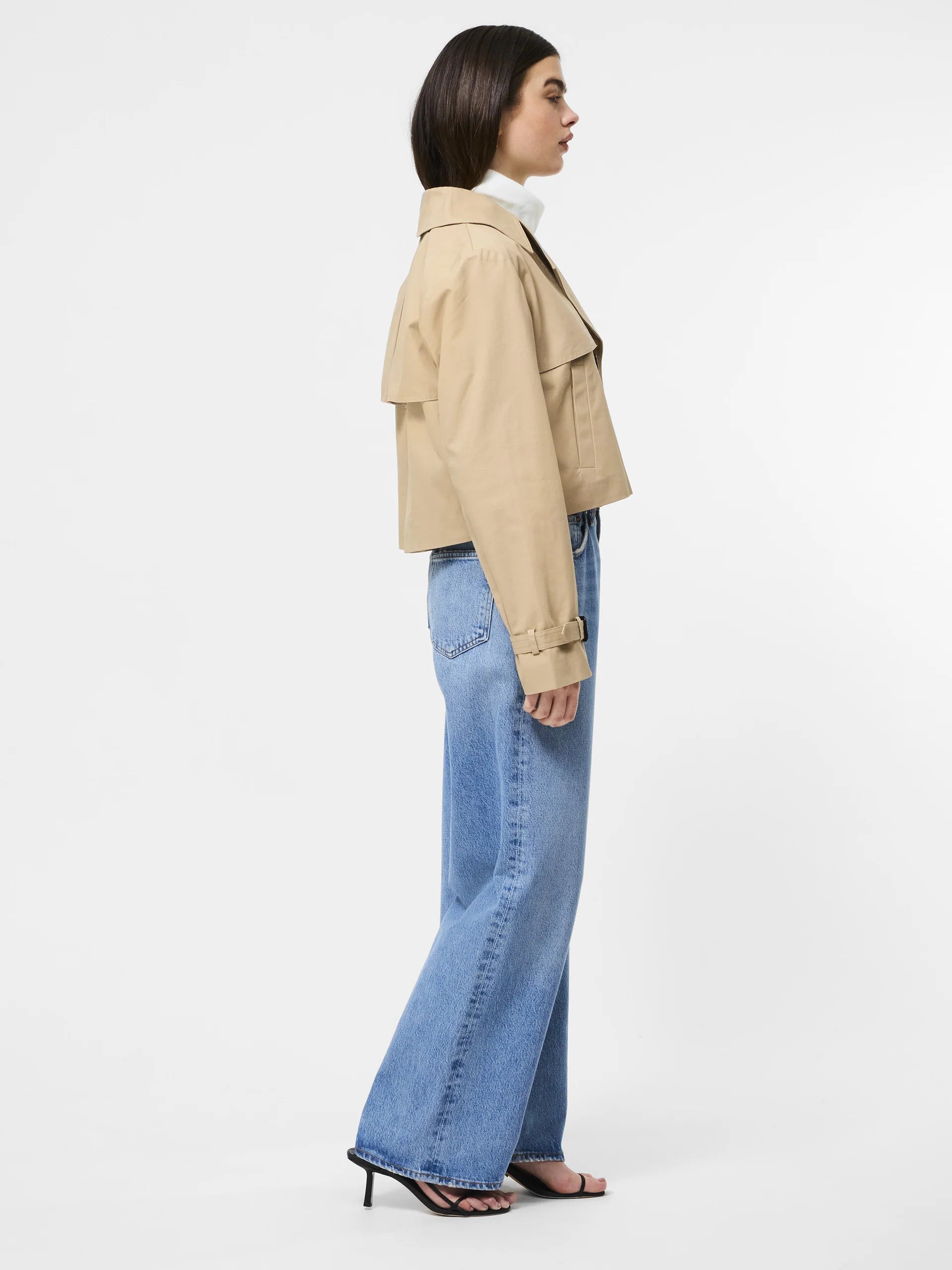 The Cropped Twill Trench is a modern twist on a timeless icon. With all the classic trench details—double-breasted buttons, a storm flap, structured shoulders—reimagined in a cropped silhouette, it’s the perfect top layer when you want something tailored but not too traditional.