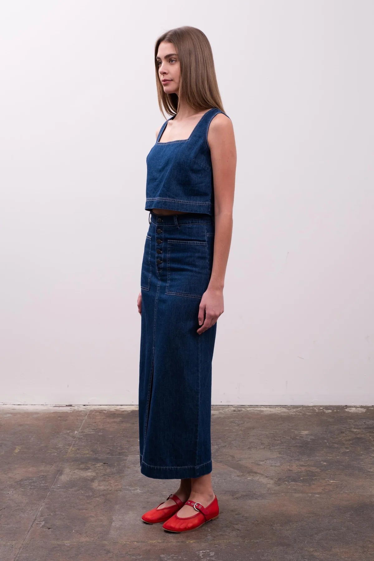 Matching Skirt: Denim Midi Skirt