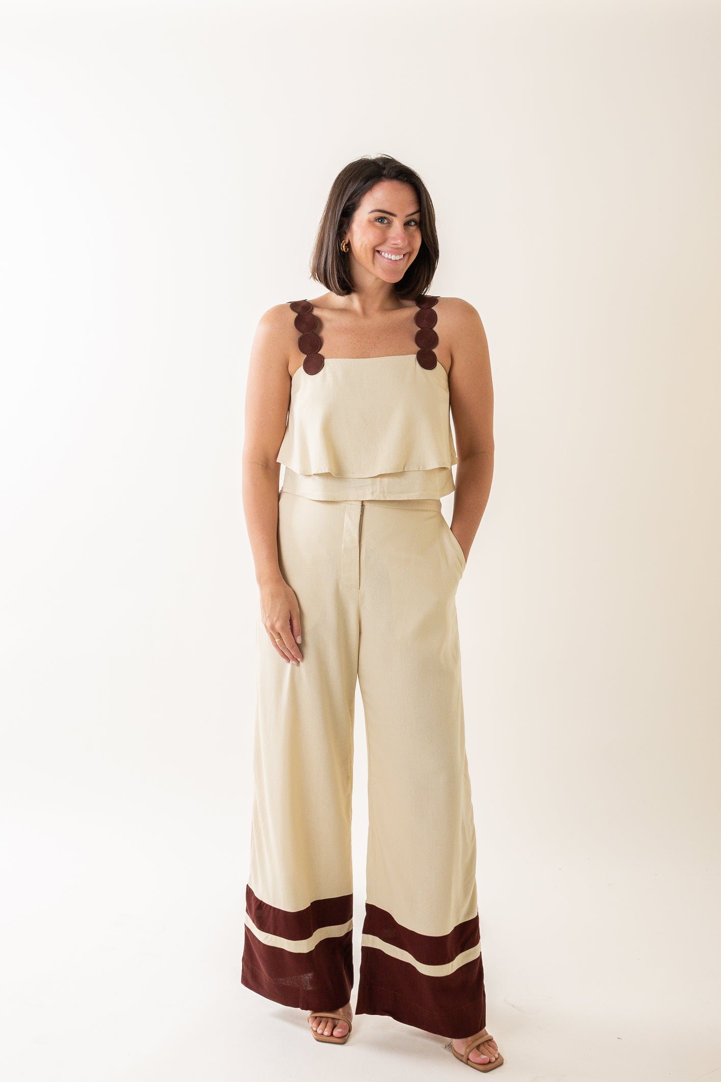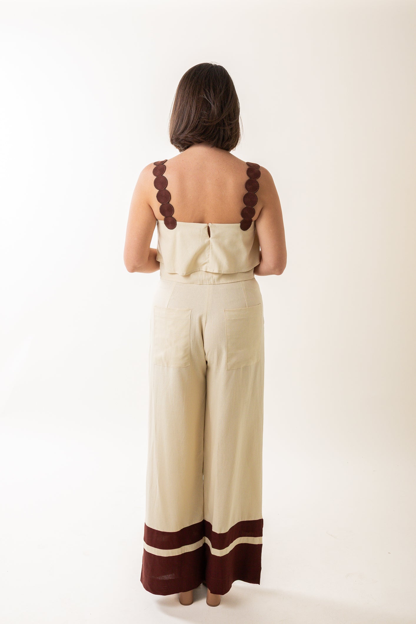 Matching Top: Linen Blouse With Round Embroidered Straps