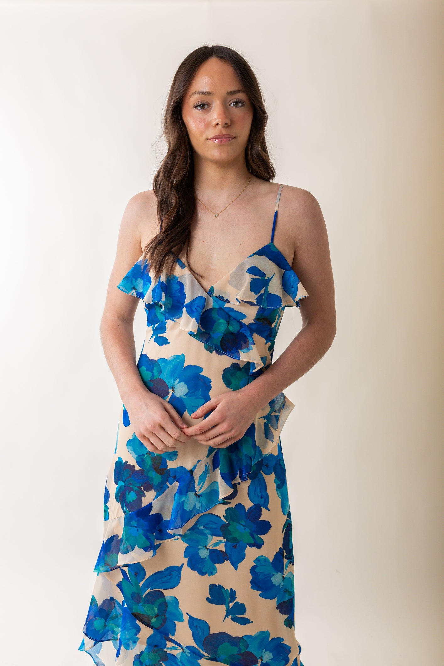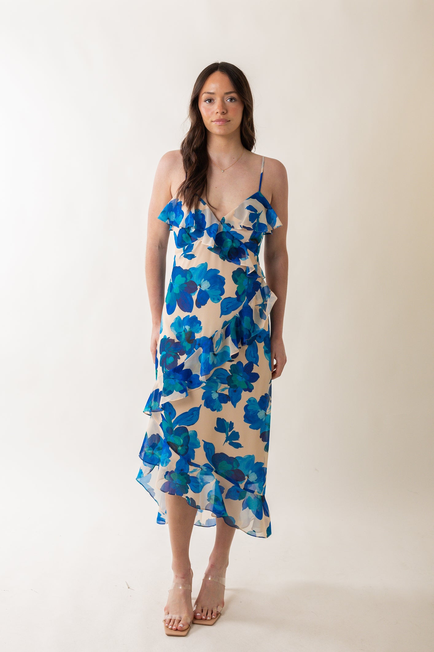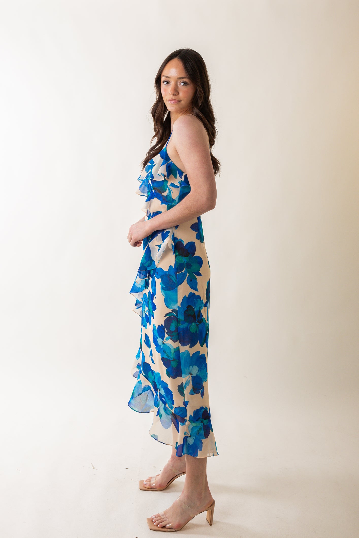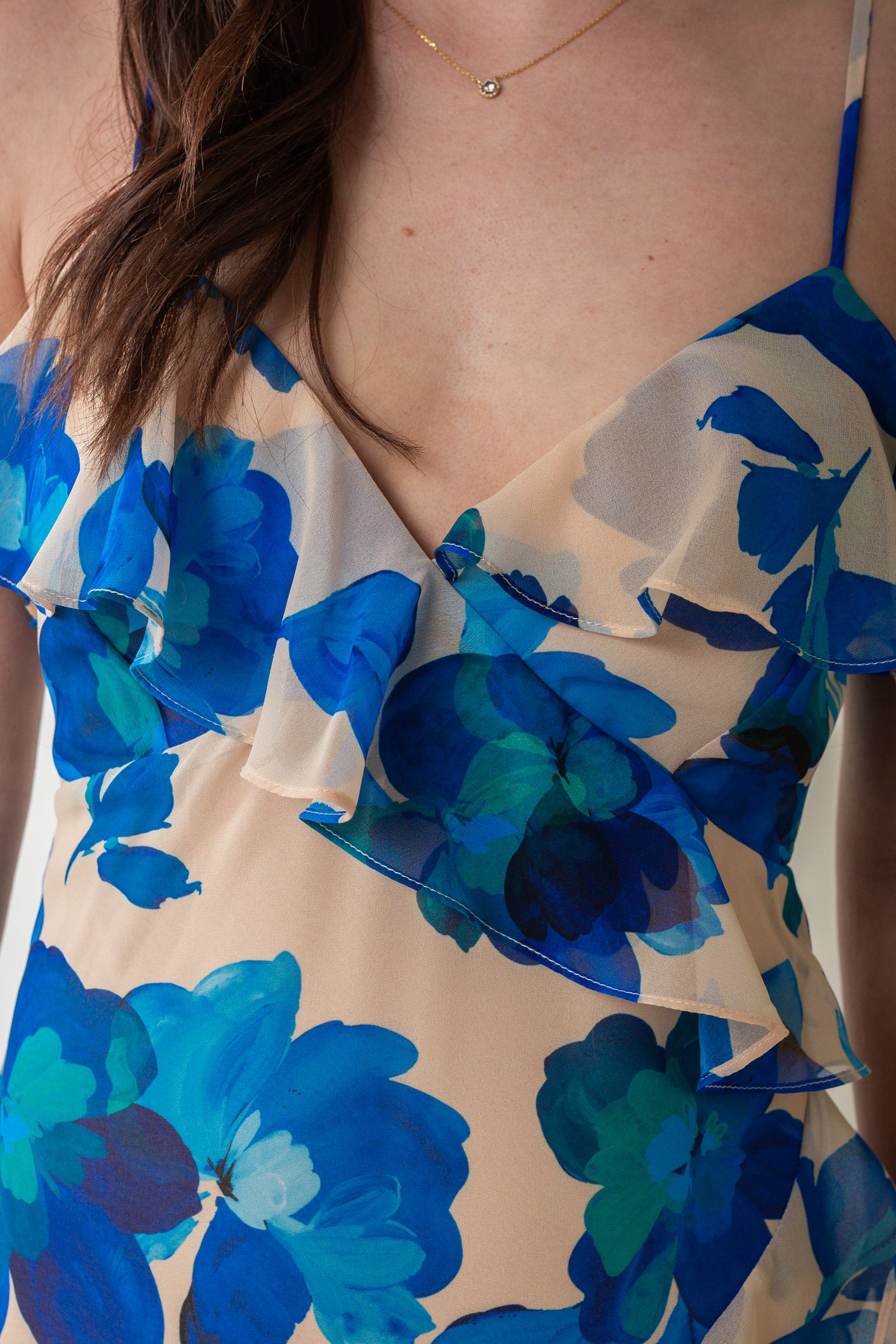 - Chiffon ruffle details throughout