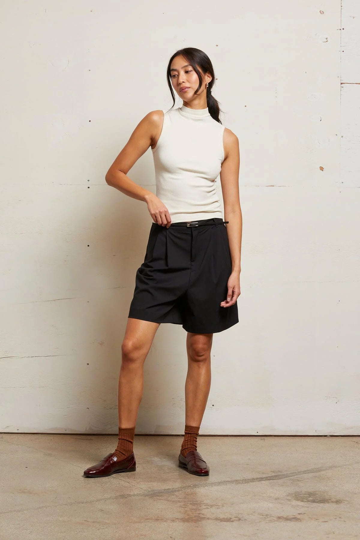Mel Luxe Rib Sleeveless Mock Neck Tank