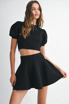 Puff Sleeve Crop Top and Mini Skirt Set
