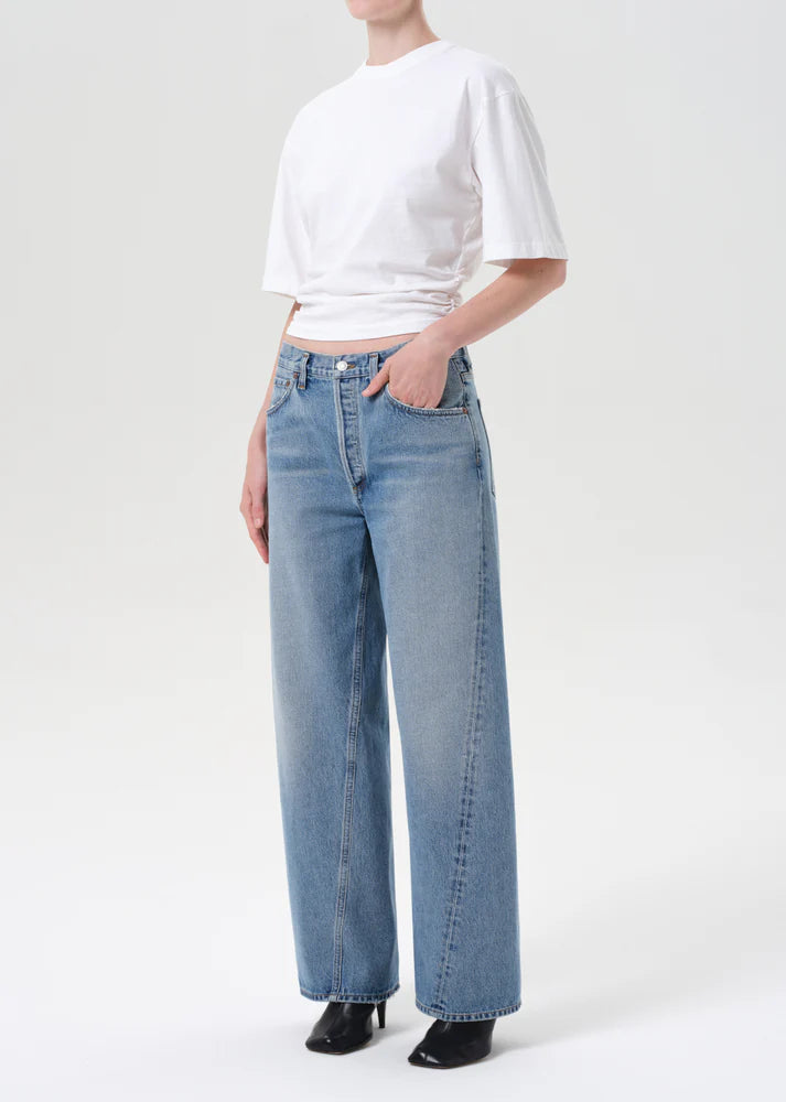 Looks Like: Clean white exaggerated short sleeve tee. Feels Like: Lightweight jersey cotton.