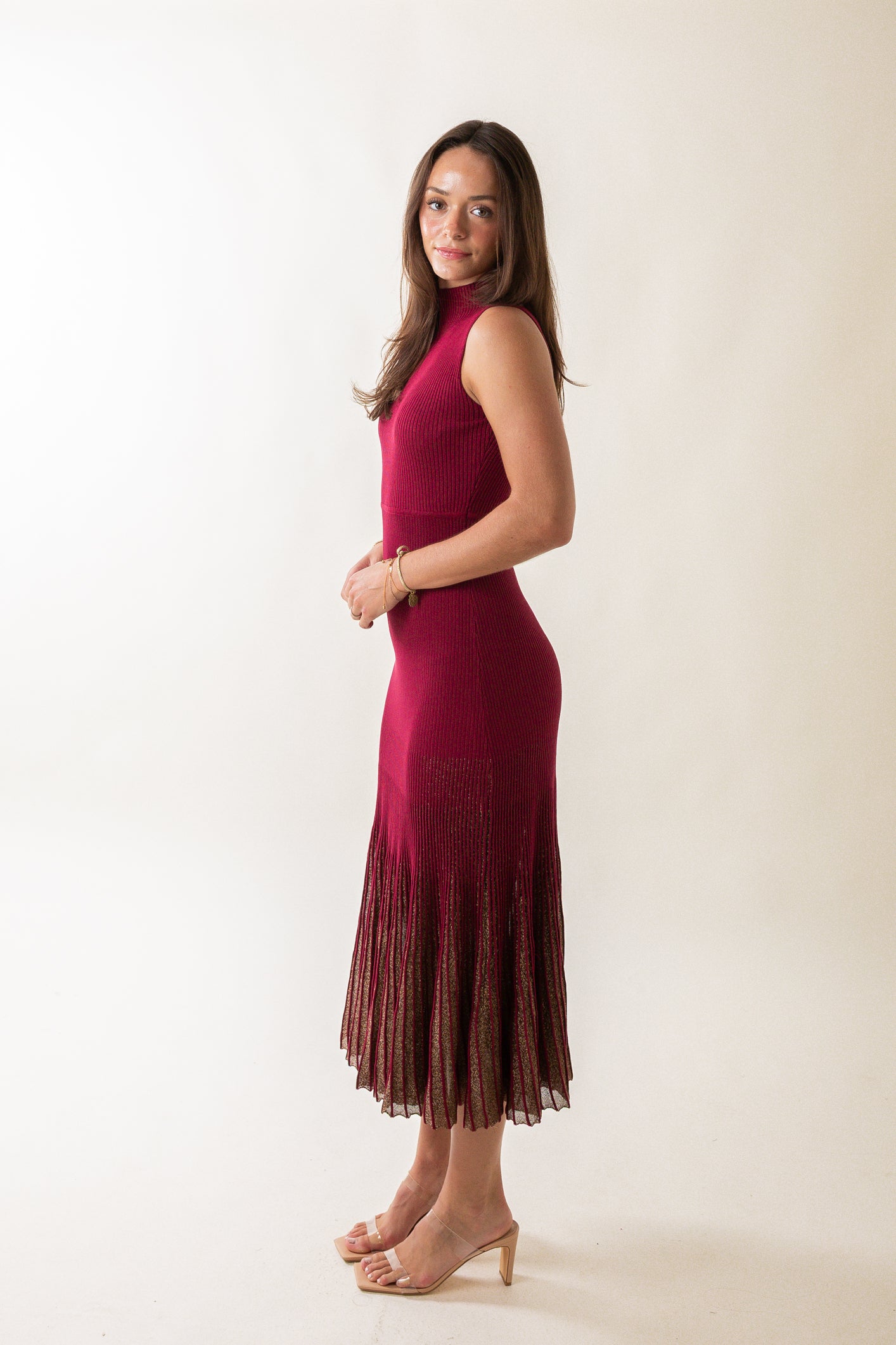 Sleeveless Shimmer Hem Pleated Midi Sweater Dress