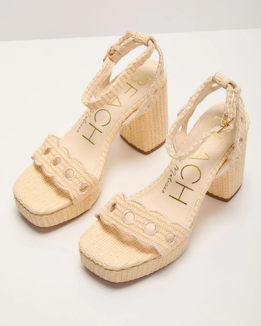 - Approximately 1.5 inch platform with a 3.75 inch block heel