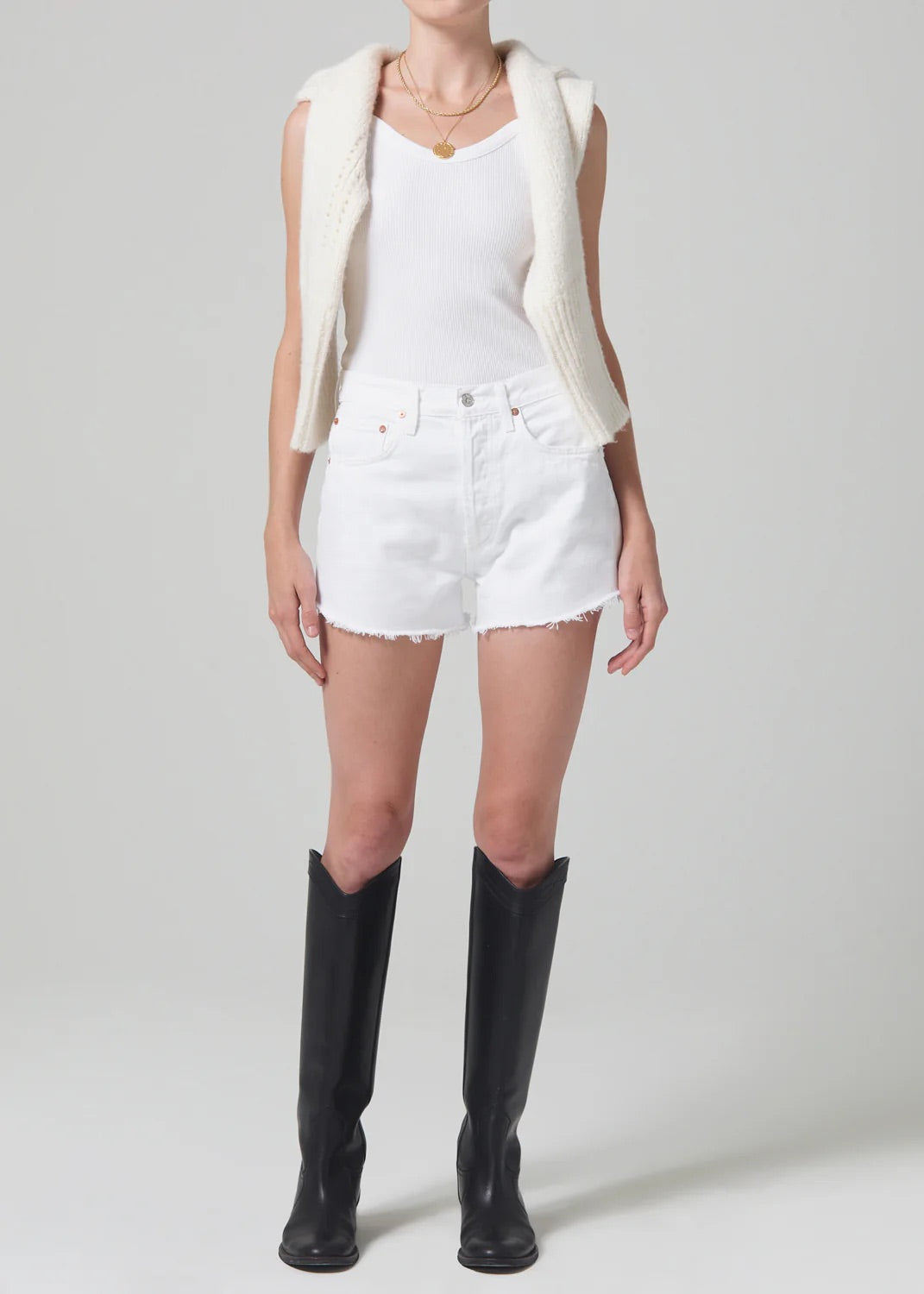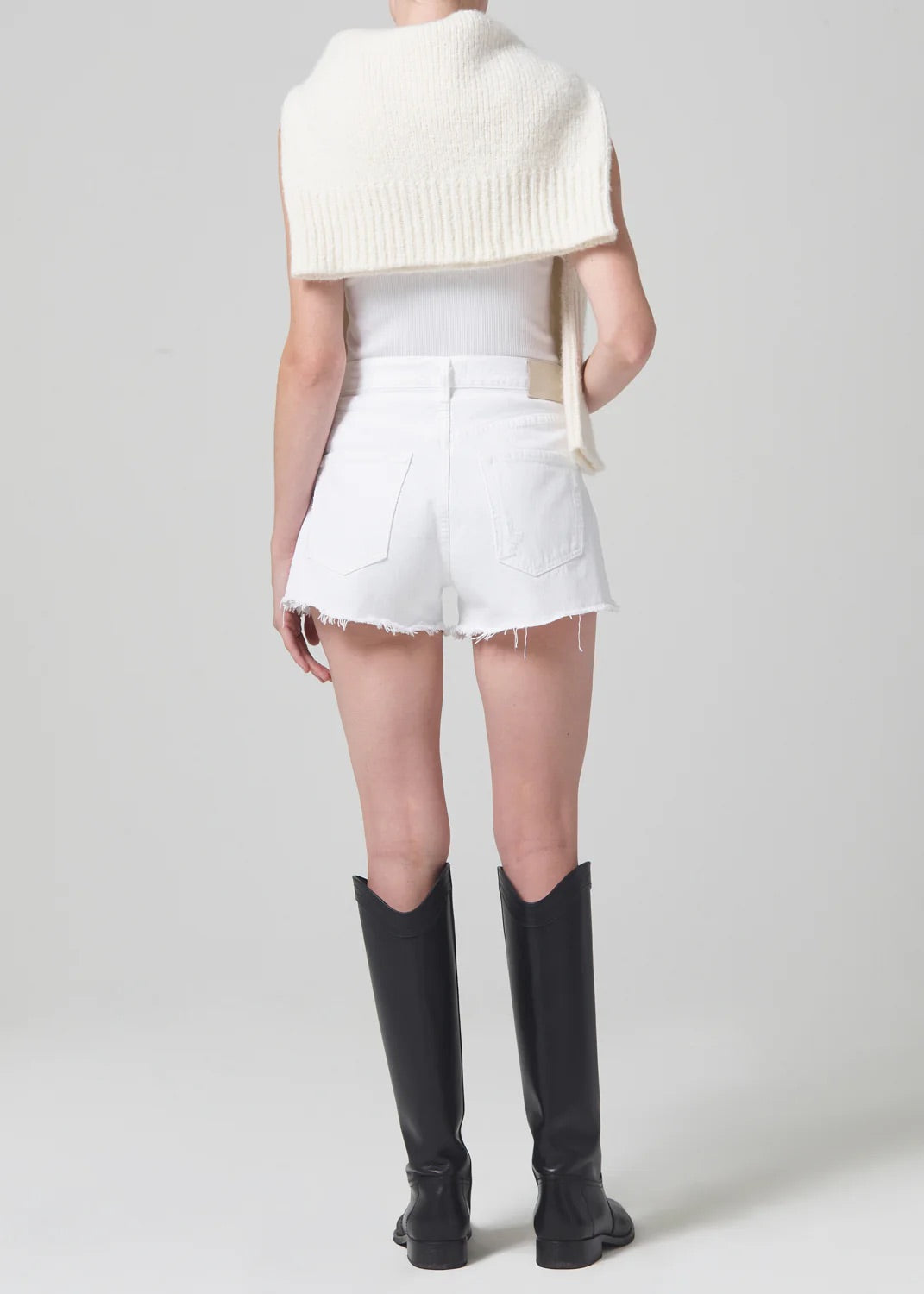 A true summer staple, this relaxed mid-rise offers an easy fit with undone edges. Perfect for a getaway, these ultra-comfortable cut-offs can be styled with virtually anything. We like to pair ours with a classic tee or light sweater.
