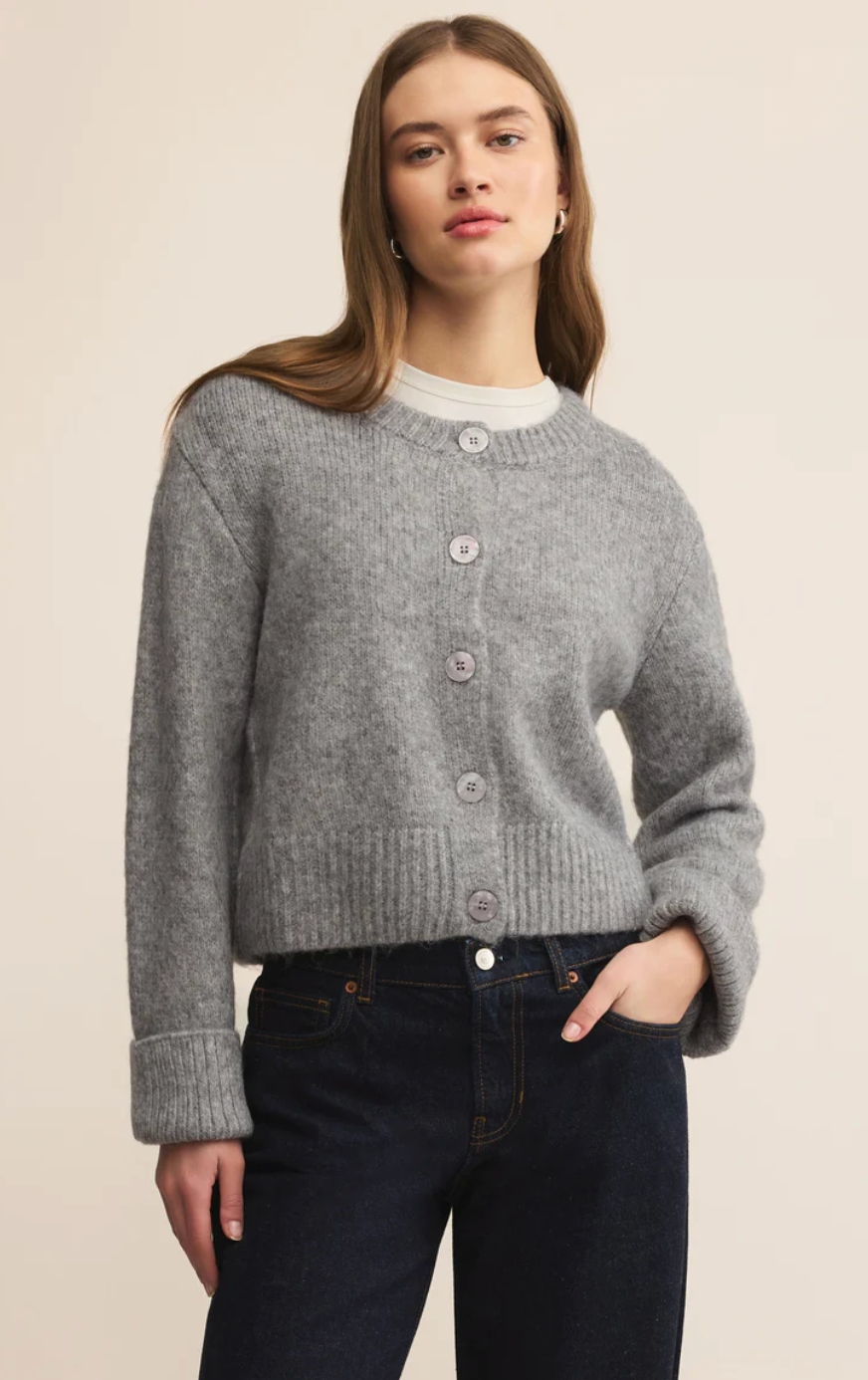 Brushed mohair yarns give this cropped button-front cardigan its soft, cloudlike feel. A modern take on a classic, it’s perfect for layering or wearing as a top with denim.