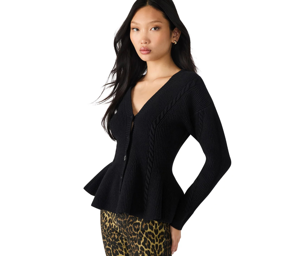 Bring a touch of modern elegance to your everyday style with this Steve Madden sweater. The V-neck highlights the neckline while creating a lengthening effect, and the peplum silhouette offers a waist-accentuating shape. The button closure details let you play with the styling.