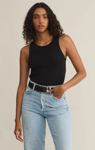 This crewneck tank is soft, sleek, and bra-friendly, perfect as a base layer in cooler weather or on its own as an elevated option. With its comfy ribbed fabric and fitted, tuckable design, it’s the kind of piece you’ll keep reaching for, no matter the season.