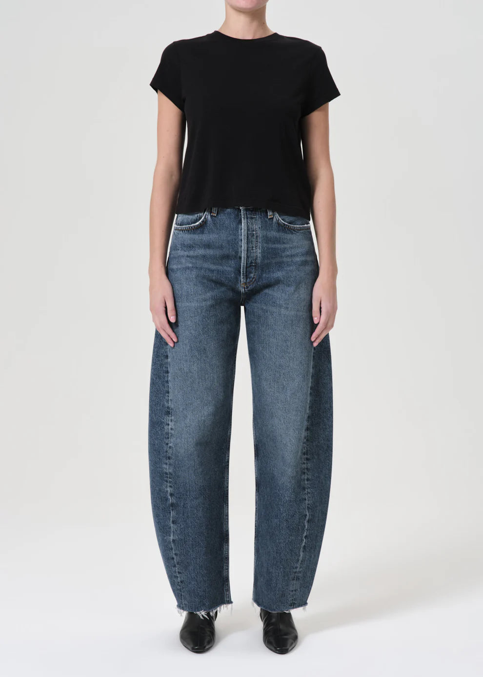 Inspired by two of Agolde's best-selling styles. Featuring a flattering high-rise waist with a close-fitting top block through the hips, an easy, classic straight leg finished with a cropped inseam.