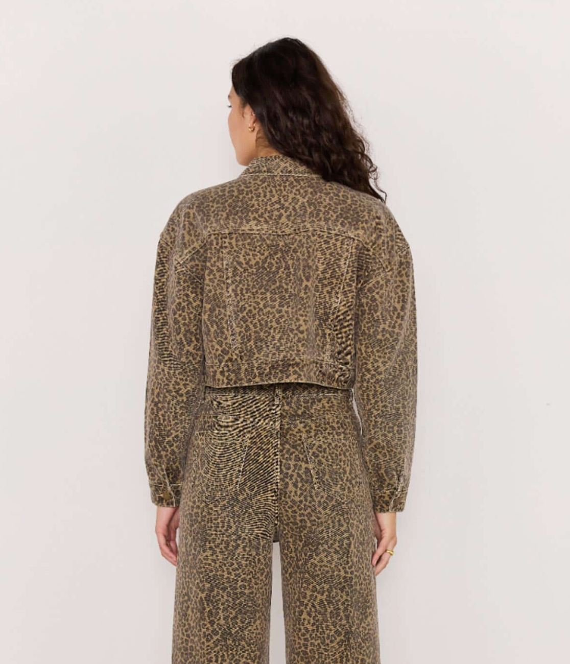 Bring a little wild into your wardrobe with the Anouk Crop Denim Jacket. Crafted from 100% cotton in a washed leopard print, this boxy silhouette features a cropped cut and brass-toned hardware for that cool, vintage feel.