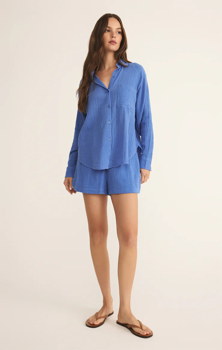 Made for sun-soaked days, this high-rise short is crafted from 100% cotton with a softly textured finish. Fully lined with a flexible elastic waistband, it's your go-to for easygoing comfort and all-day wear.