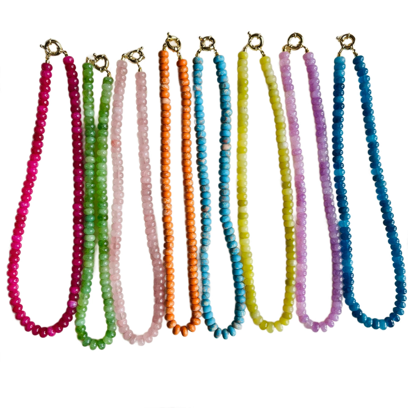 Each necklace is handmade in Charleston, South Carolina. These are perfect to pair with charms either on the clasp and wear with the clasp in the front, or add a pendant or charm to the front of the beaded necklace.