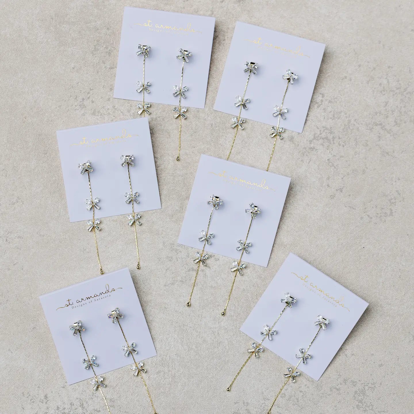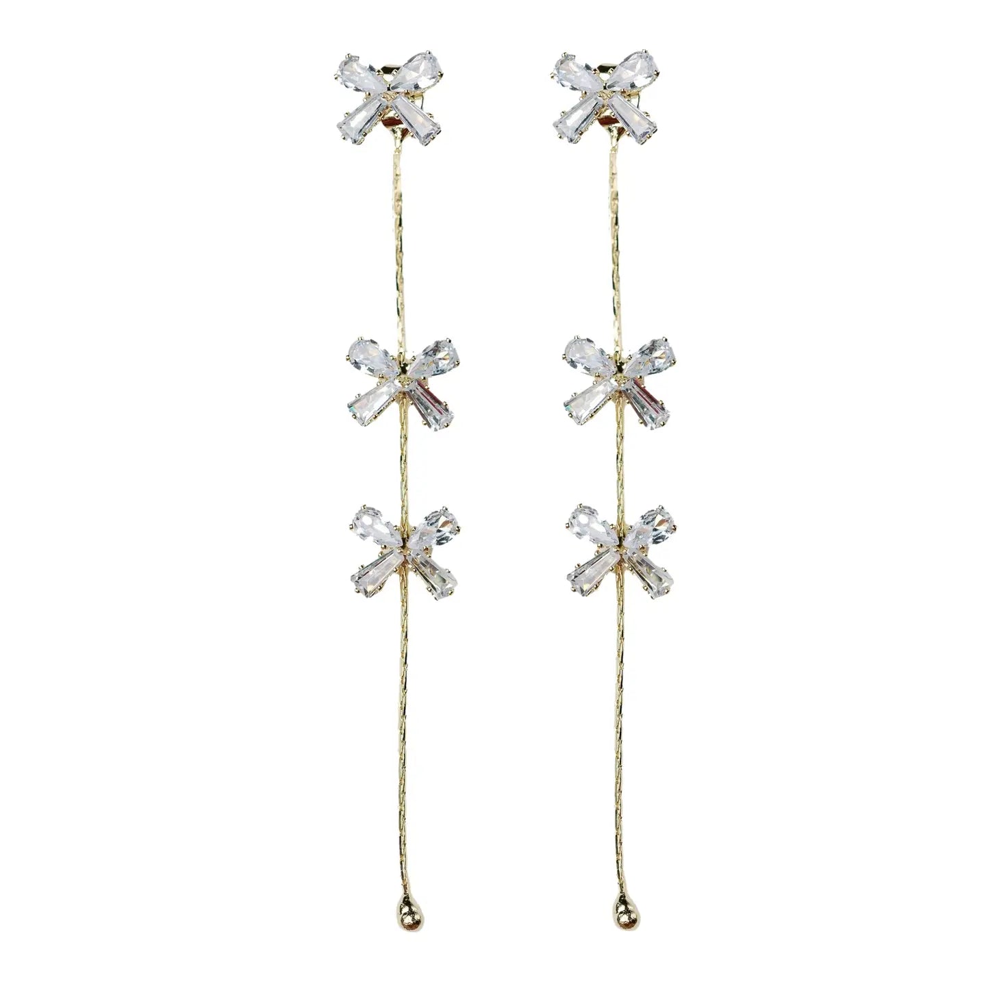 Add a sleek and modern touch to your looks with these easy and on-trend diamond dusters. Featuring three delicate faux diamond bow motifs that swing and sparkle with every movement, these weightless earrings are the perfect easy update.