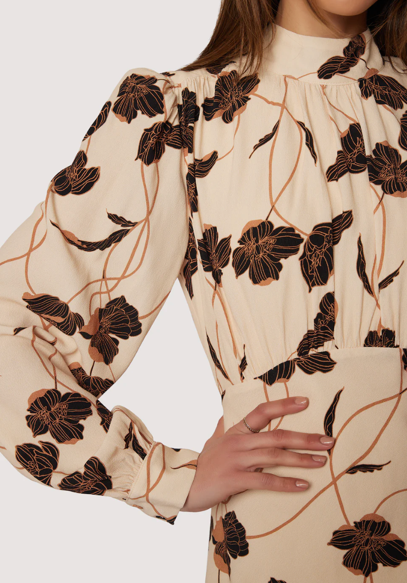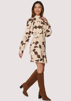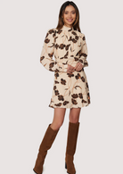 The Echoes Of Romance Mini Dress combines timeless elegance with modern design, featuring long sleeves and a high neck for a refined silhouette. An invisible zipper ensures a seamless finish, enhancing its sophisticated appeal. Perfect for occasions that call for understated grace and polished style.