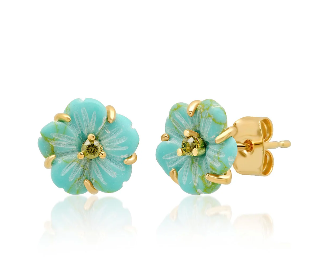 Bloom with elegance in these Hand-Carved Flower Stud Earrings! Each petal is intricately sculpted, ensuring no two blossoms are exactly alike. A delicate CZ accent in the center adds the perfect touch of sparkle, making these floral-inspired studs a charming addition to any jewelry collection. Whether you're a nature lover or just adore timeless, feminine details, these earrings are a must-have for every flower child.