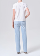 The Harper Jean brings a soft, lived-in feel to a timeless silhouette. Designed in a light pale warm indigo wash, it features a mid-rise waist, a flattering square top block, and a straight yet subtly wide leg for an easy, relaxed shape. Crafted from soft, breathable regenerative cotton denim with light stretch for natural movement, it delivers a comfortable worn-in feeling and effortless everyday polish.