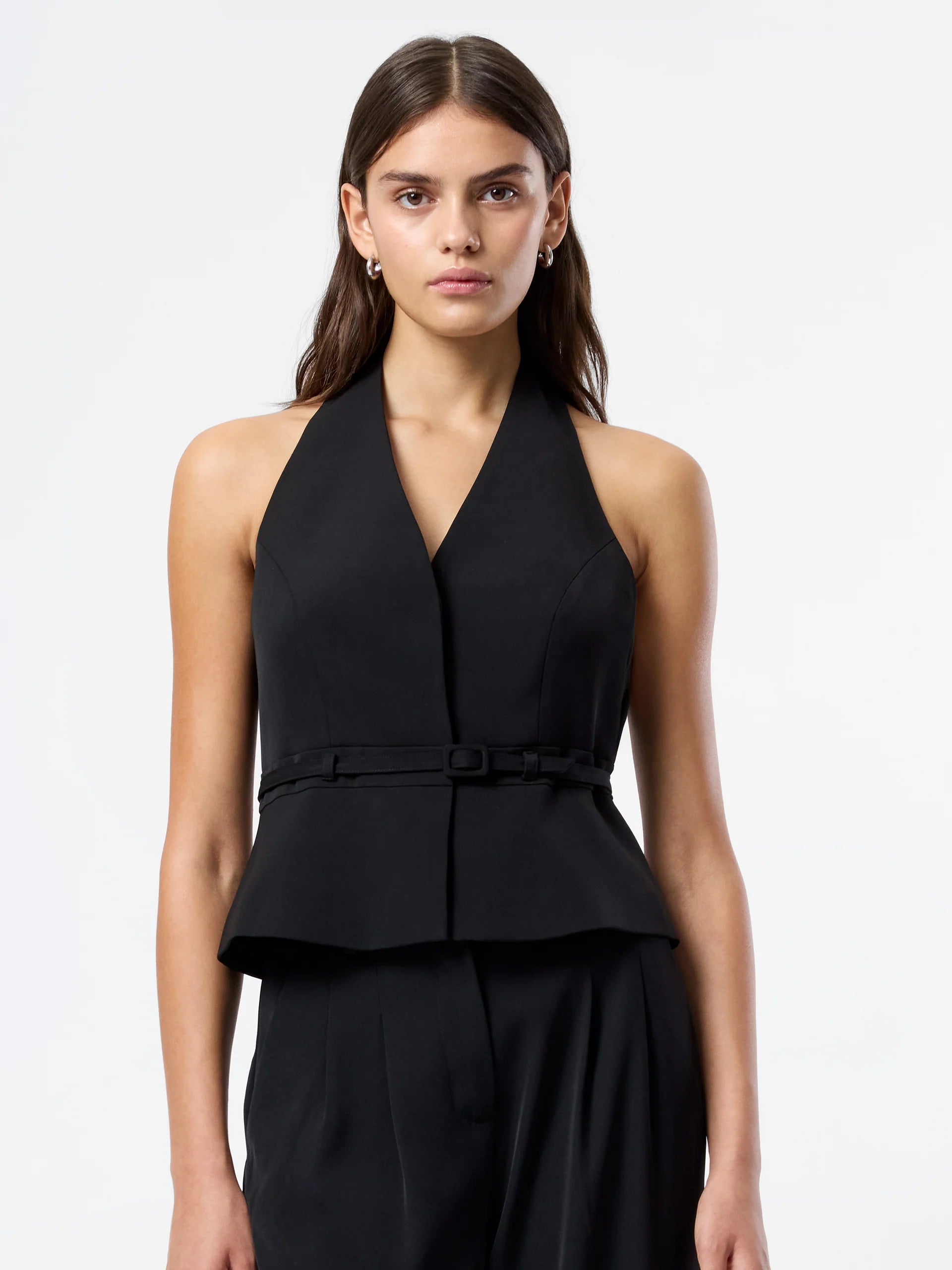Your desk-to-drinks hero. The Harry Suiting Belted Halter Top is a tailored halter with a deep V neckline and a waist-cinching belt that keeps things sleek. It’s structured enough to look polished, but the open back keeps it interesting. Wear it with the matching Harry Suiting Trousers or pair it with relaxed denim when you want to keep things cool but still turn heads.