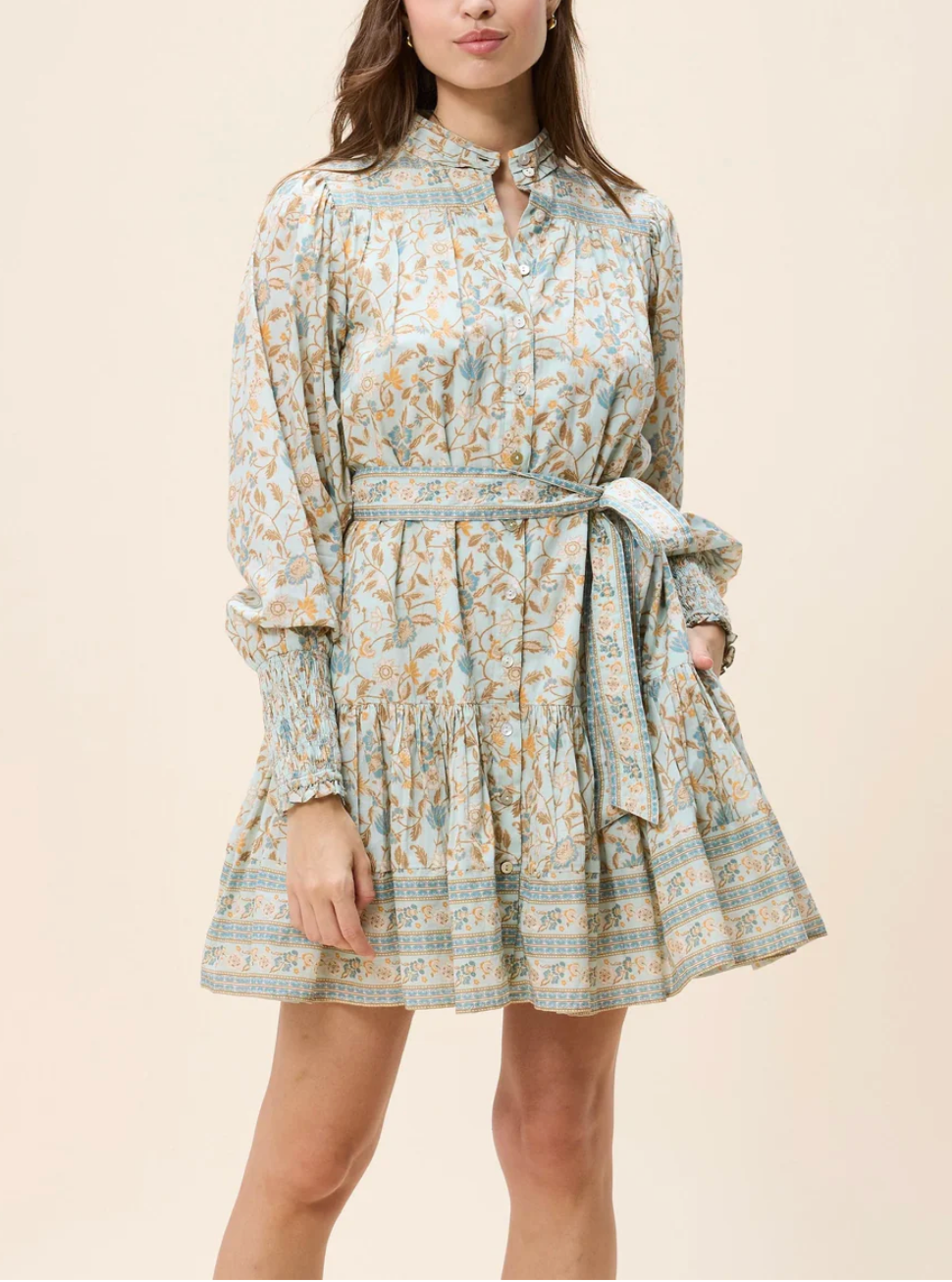 The Karli Mini Dress is a romantic, flirty silhouette, designed with a beautifully structured bodice featuring smocking at the back for ease and comfort. This dress pairs soft volume with thoughtful detailing. Long sleeves with elasticated openings add a touch of playful movement, while the intricately placed print creates an artful, feminine finish. Effortless yet statement-making, the Karli Mini Dress transitions seamlessly from day outings to warm, breezy evenings.